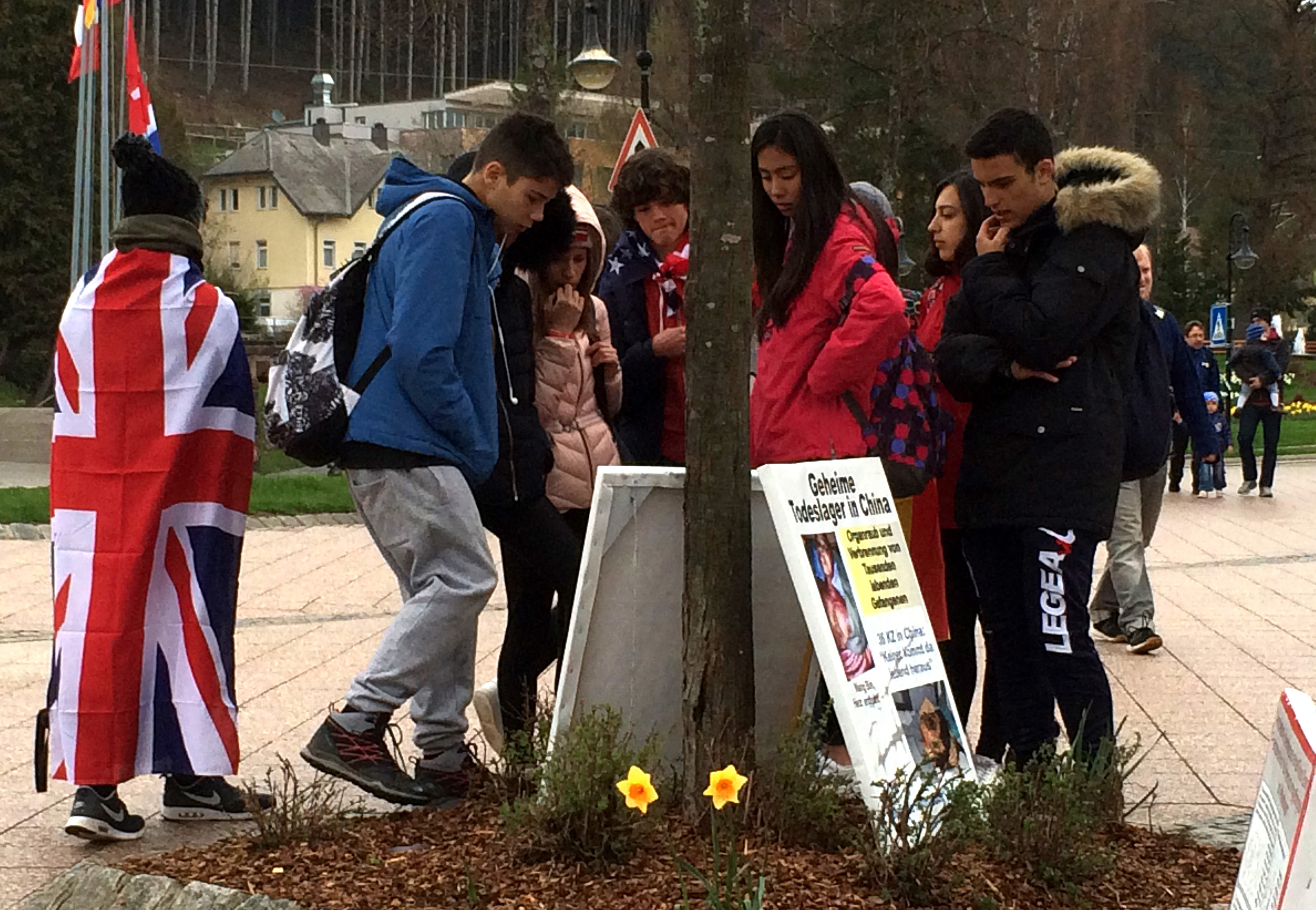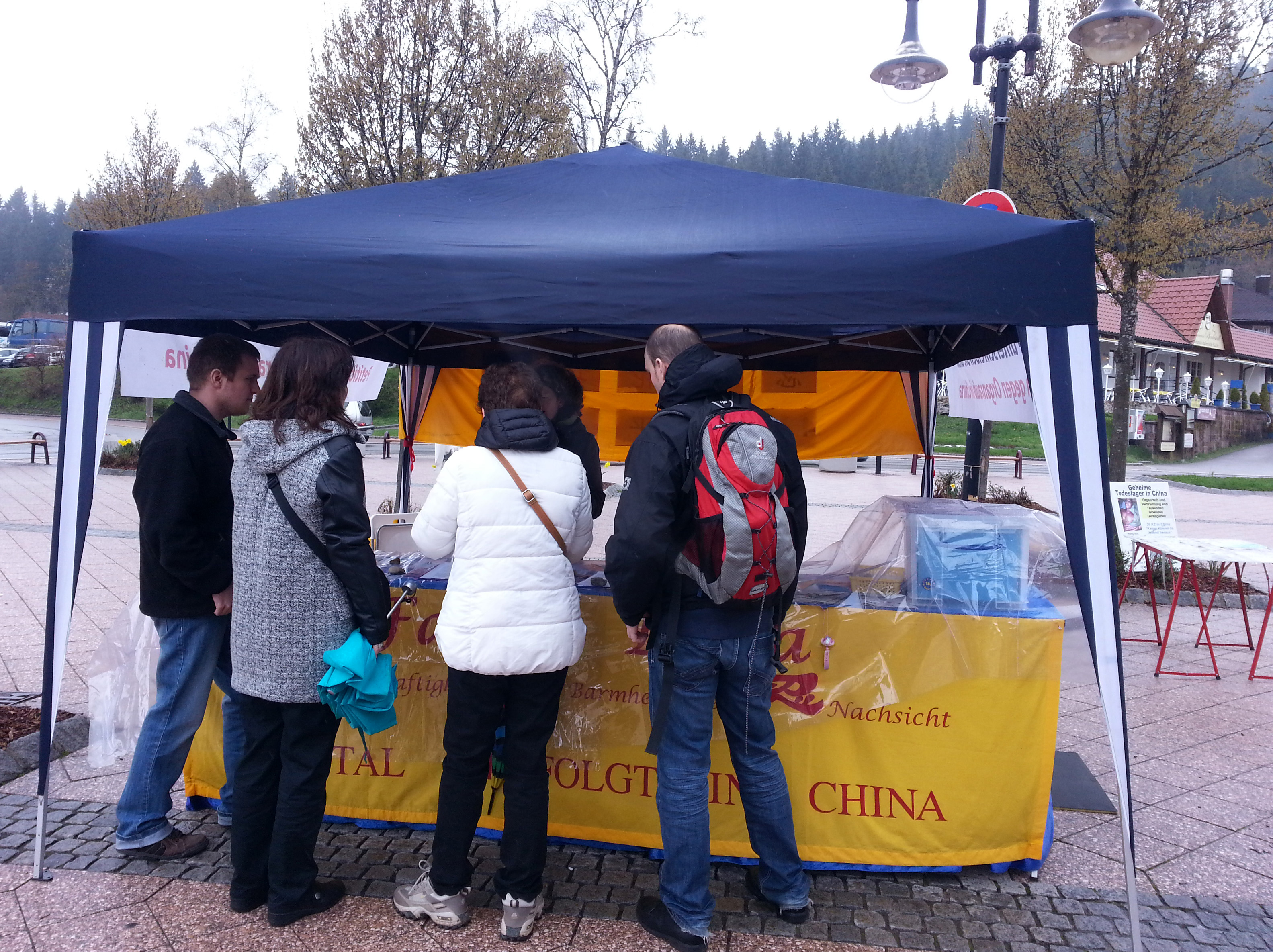 ![]() 图1:纪念四二五,德国南部黑森林地区的法轮功学员在缇缇湖风景区举办信息日,传播法轮功的真相。图为游客们正在观看真相图片。 |