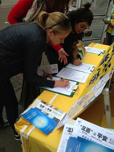 ![]() 图3-6:意大利人和游客签名支持起诉迫害元凶江泽民 |