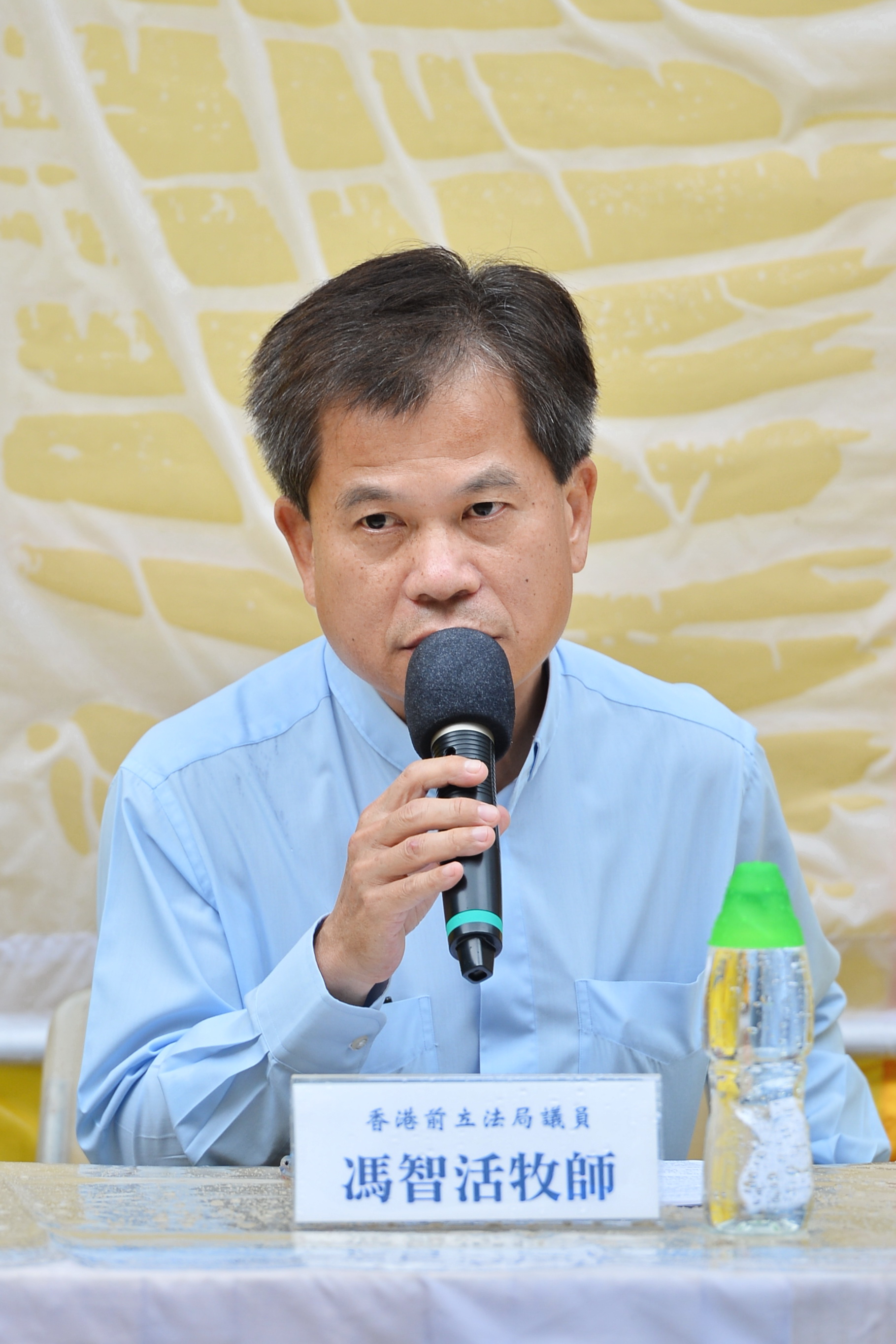 图4:香港前立法局议员冯智活牧师在集会上表达衷心钦佩法轮功学员,并且强调真理必胜。