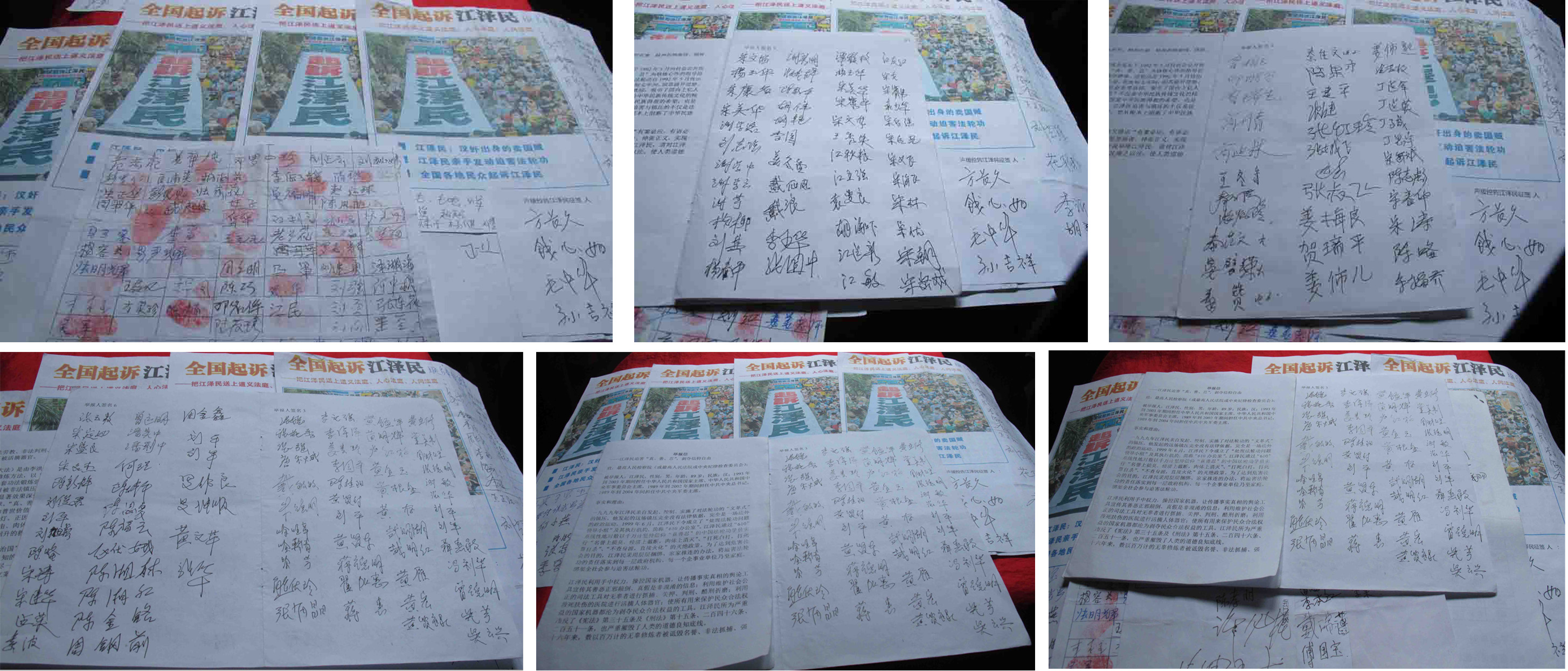 一个私营老板签名时说,江泽民算个什么东西,什么也不是。他全家看过了法轮功的真相资料,看了《九评共产党》,他的妻子用自己的真名签名举报江泽民。三退后回老家跟家乡人说,法轮功是好的,法轮功不是共产党宣传的那样,天安门自焚是假的。法轮功才了不起。最近还请了《转法轮》拜读。生意越来越红火。