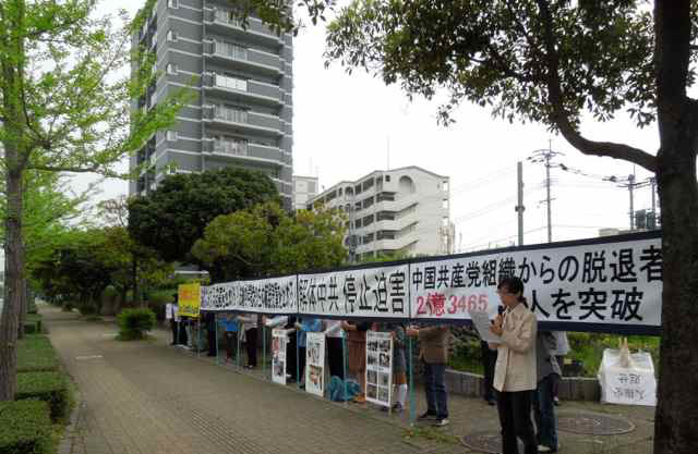 法轮功学员代表并介绍,自二零一五年五月诉江大潮兴起,同年九月,熊本地区的学员们于同年九月开始,在熊本市的繁华街区以及长崎县、宫崎县、鹿儿岛县、大分县、福冈县等地,进行了联署举报江泽民的征签活动,让当地广大民众了解法轮功,揭露中共江氏集团的罪恶,加入制止迫害的正义之列中来。
