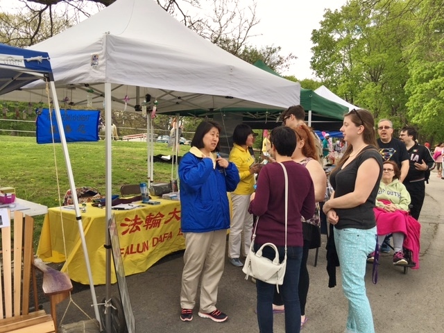 【明慧网二零一六年五月十一日】二零一六年五月七日和八日,纽约州府奥伯尼(Albany) 举办一年一度的郁金香节,今年是第六十八届,法轮功学员前来参加,设立了展位,向人们介绍法轮功,揭露中共对法轮功学员的残酷迫害,并征集声援起诉迫害元凶江泽民的签名。了解真相后,许多民众签名支持“诉江”,制止迫害。并有华人现场三退。