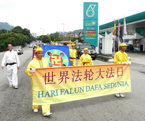 【明慧网二零一六年五月十一日】二零一六年五月十三日是法轮大法洪传世界二十四周年,暨法轮功创始人李洪志先生六十五华诞。马来西亚各地区的法轮功学员分别在法轮大法日前夕,恭祝李洪志师尊生日快乐以表达对师尊的感恩。学员们还举办了游行、集体炼功、讲真相活动,使越来越多的民众了解真相,并协助法轮功学员制止迫害