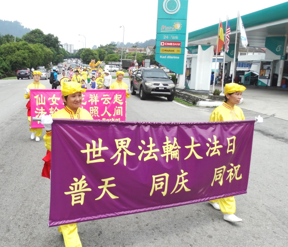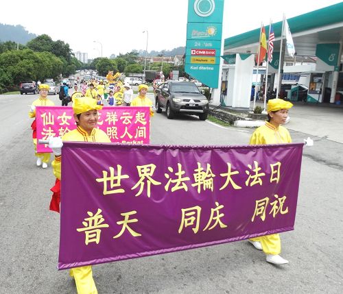 二零一六年五月二日,法轮功学员来到雪兰莪州安邦太子园(Taman Muda Ampang)举办了游行活动,与民众同庆、同祝“世界法轮大法日”。