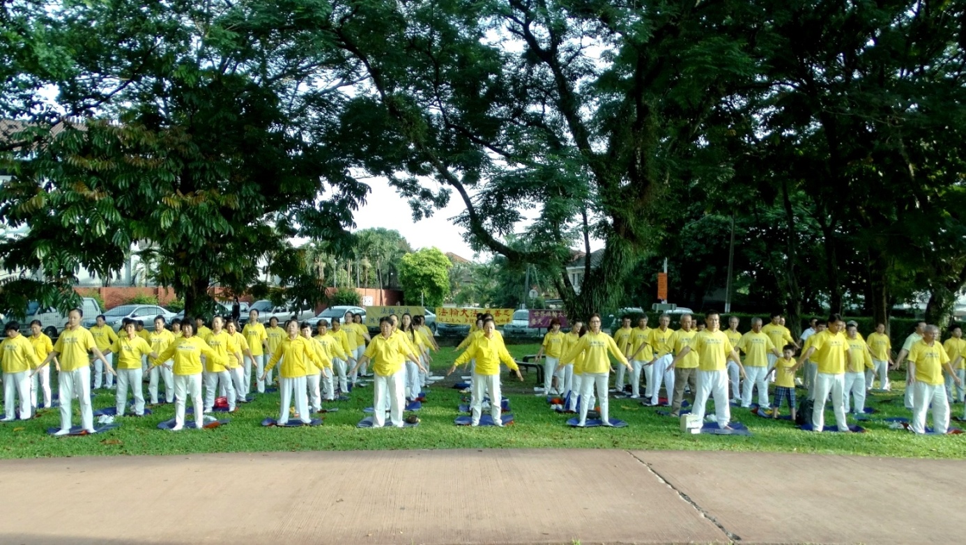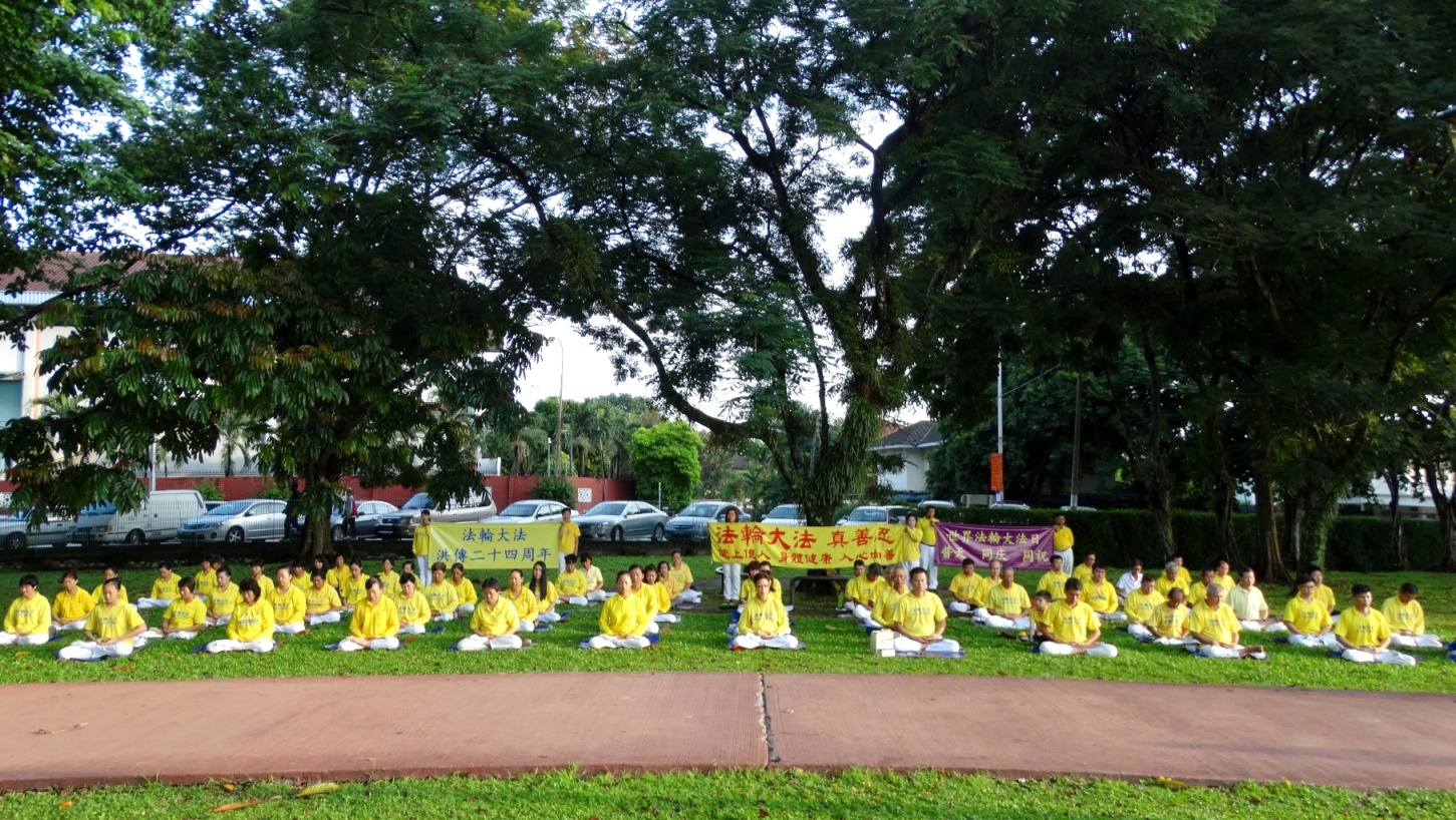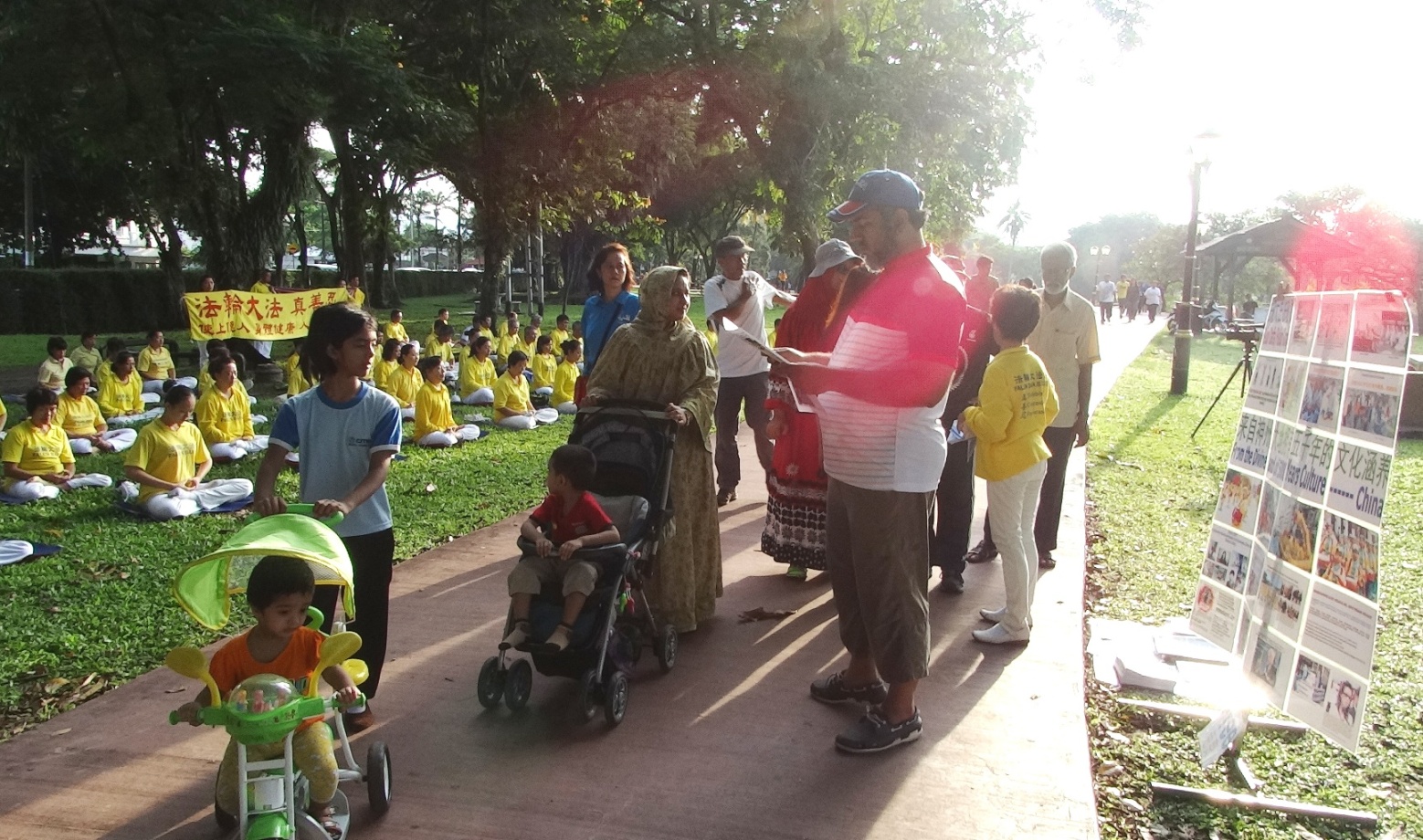 二零一六年五月八日,法轮功学员来到首都吉隆坡著名旅游景点——蒂蒂旺莎湖滨公园 (Taman Tasik Titiwangsa)举行集体炼功,纪念法轮大法洪传二十四周年。祥和的五套功法,吸引了晨运民众的关注,纷纷拿资料阅读,有的还当场学功。许多民众在了解法轮功的真相后,都纷纷签名制止中共活摘法轮功学员器官,举报江泽民迫害法轮功的罪行,协助法轮功学员制止迫害。