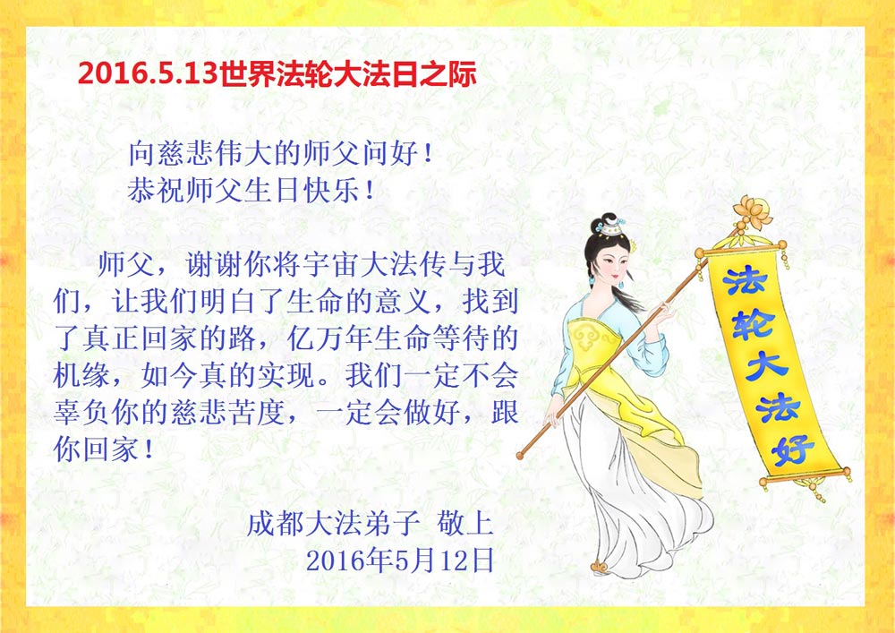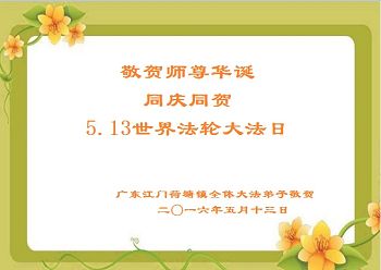 • 大陆百姓恭贺世界法轮大法日暨师尊华诞