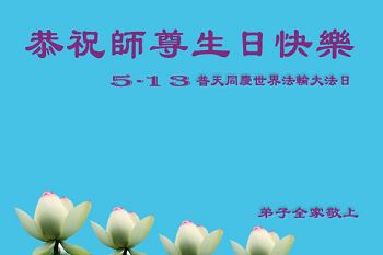 一年一度的五一三世界法轮大法日即将到来,用各种方式通过明慧网恭祝师尊华诞、恭祝世界法轮大法日,同时表达对师恩浩荡的感恩是我们每个大法弟子的心愿。