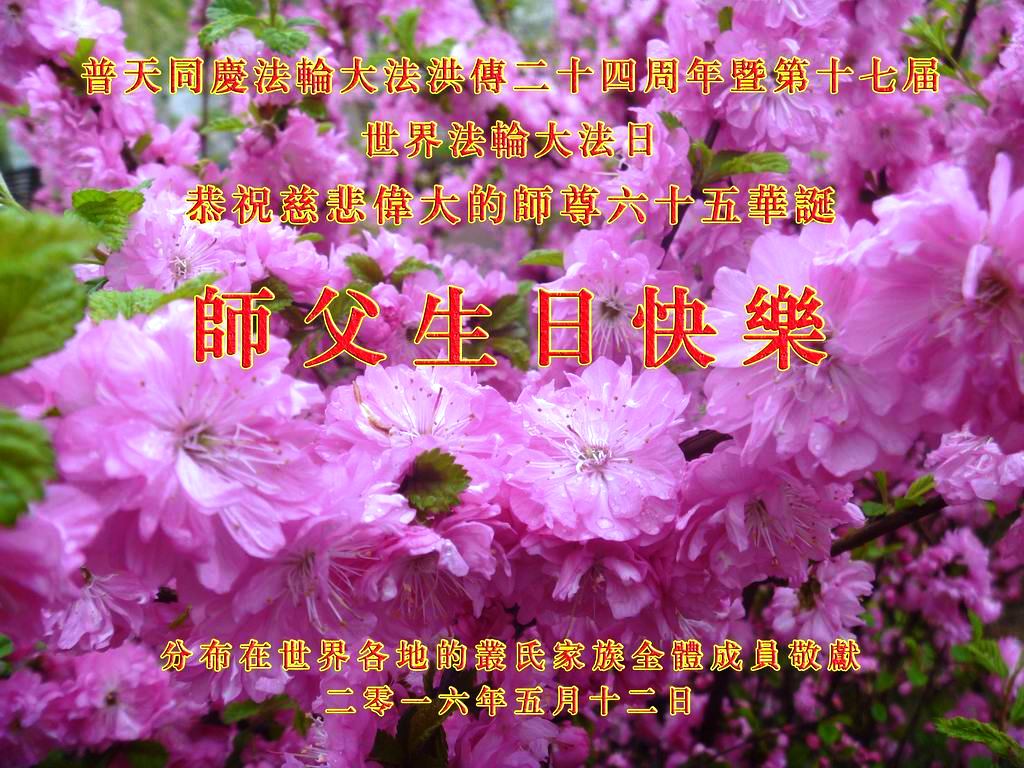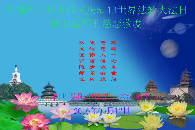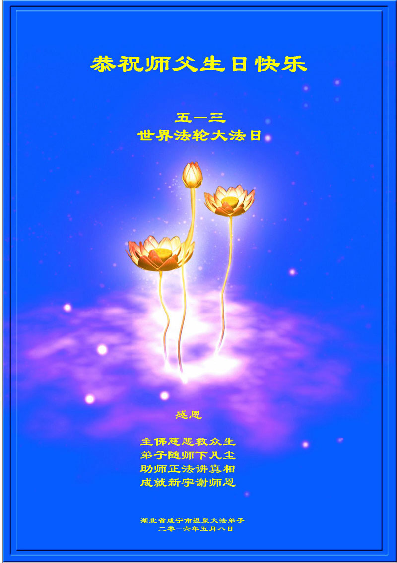 然而,我们身边明真相的世人在大法中受益的也比比皆是,他们内心深处那份虔诚的对大法的感恩与敬仰也一定期盼着在这普天同庆的日子里表达给师尊,恭祝师尊华诞。