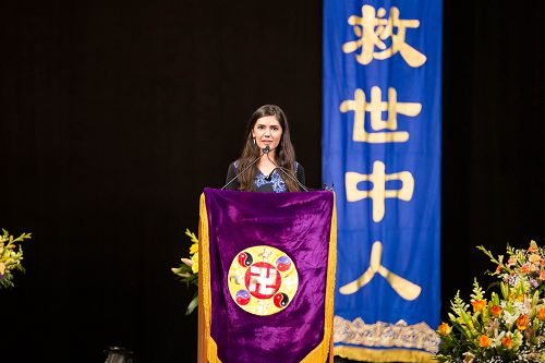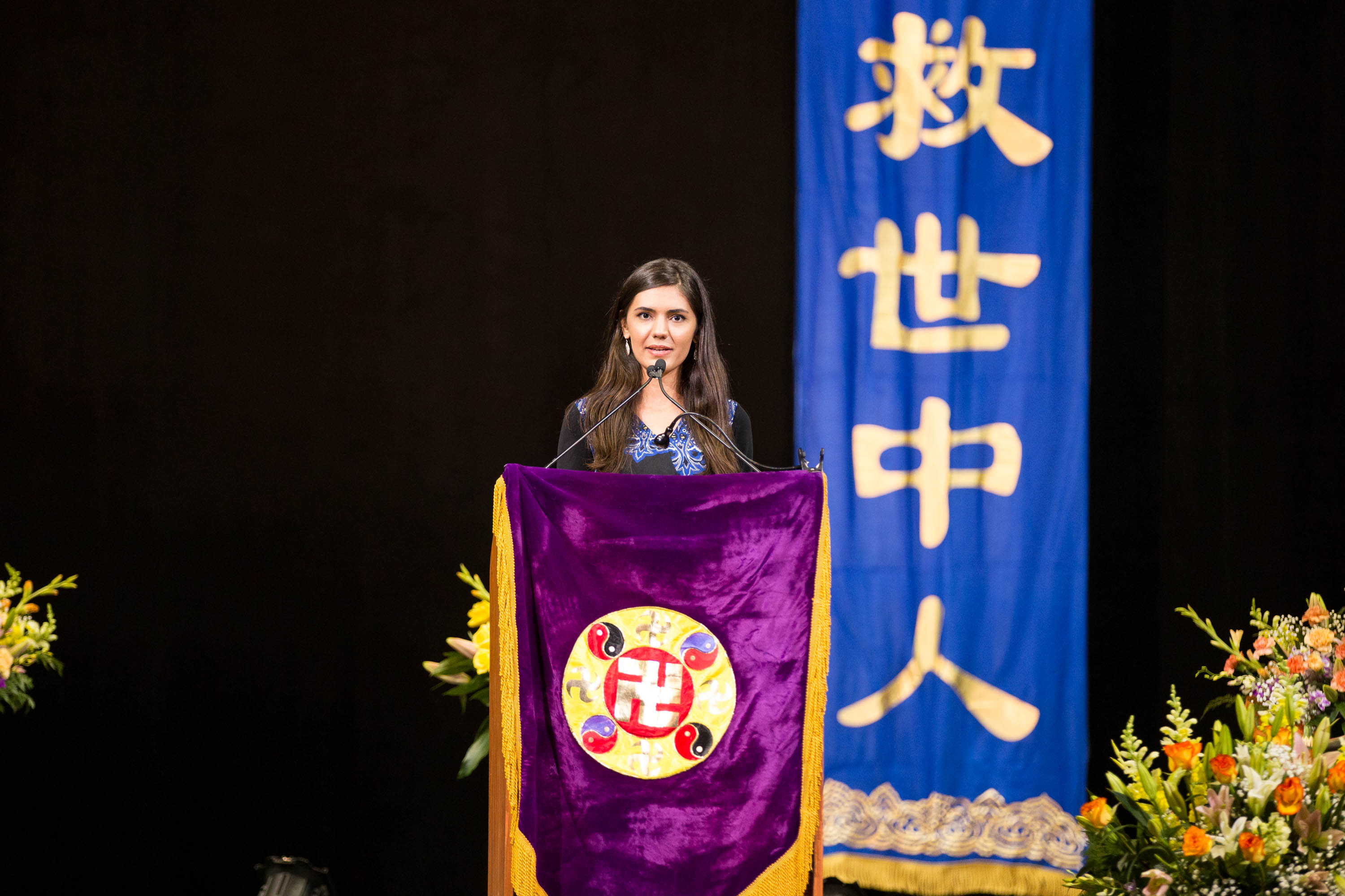 年轻的女孩Ghazal Tavanaei 来自迪拜,在媒体集团中担任销售工作,她分享了在把客户装在心里想着“救度他们,支持大法项目是他们的荣耀”,从而最后谈成了合同的故事。特别感动人的是她努力学一些简单的汉语,在迪拜中国城讲真相并成功的帮助了三个中国人三退的经历。