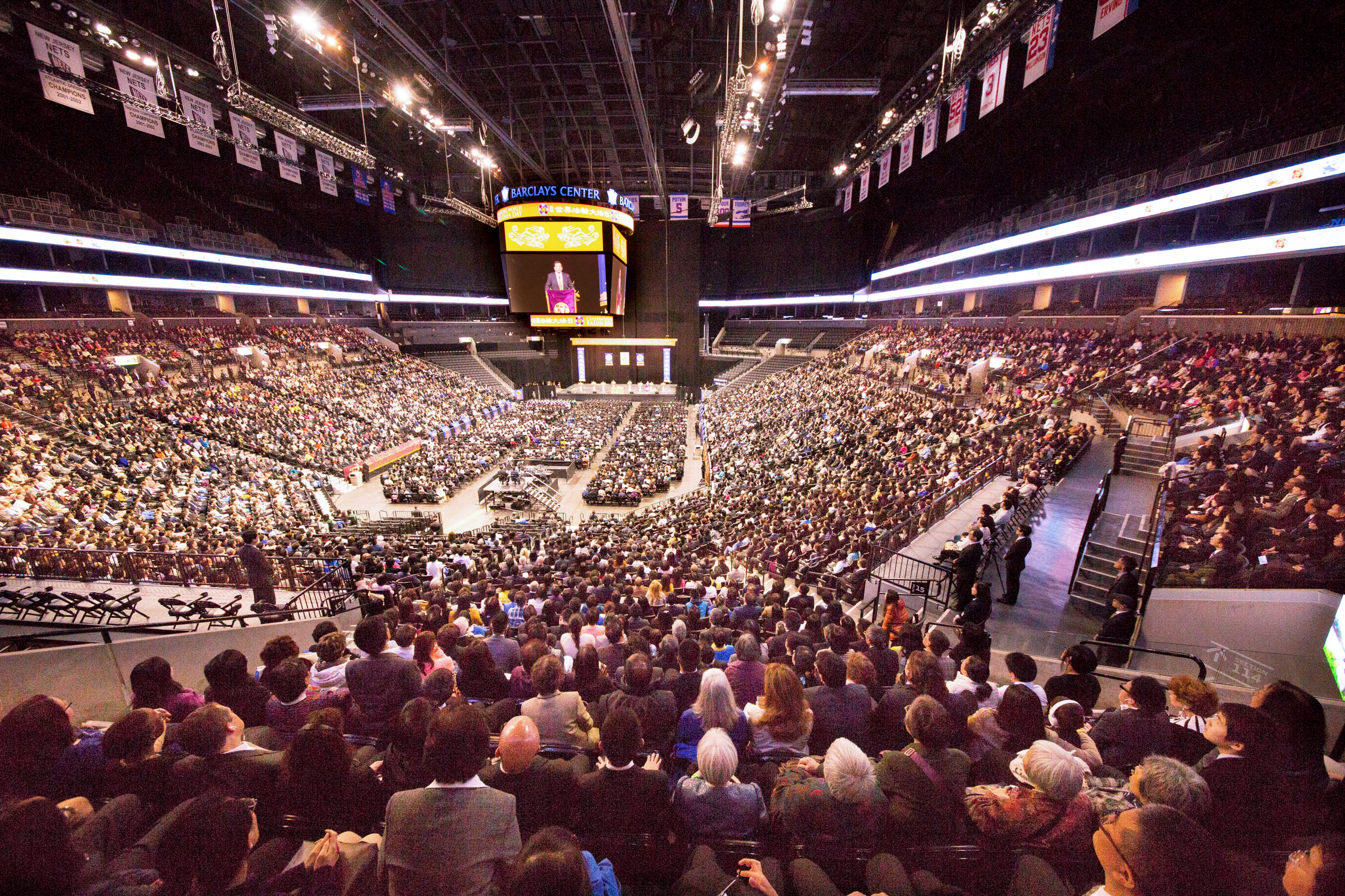 【明慧网二零一六年五月十七日】(明慧记者站纽约采访报道)二零一六年五月十五日,近万名来自五十三个国家的法轮大法学员在纽约巴克莱中心(Barclays Center)体育馆,举行法轮大法修炼心得交流会。十三位法轮功学员在会上分享了他们在救人的过程中的修炼体会。法轮大法创始人李洪志先生莅临会场,讲法与答疑两个多小时。