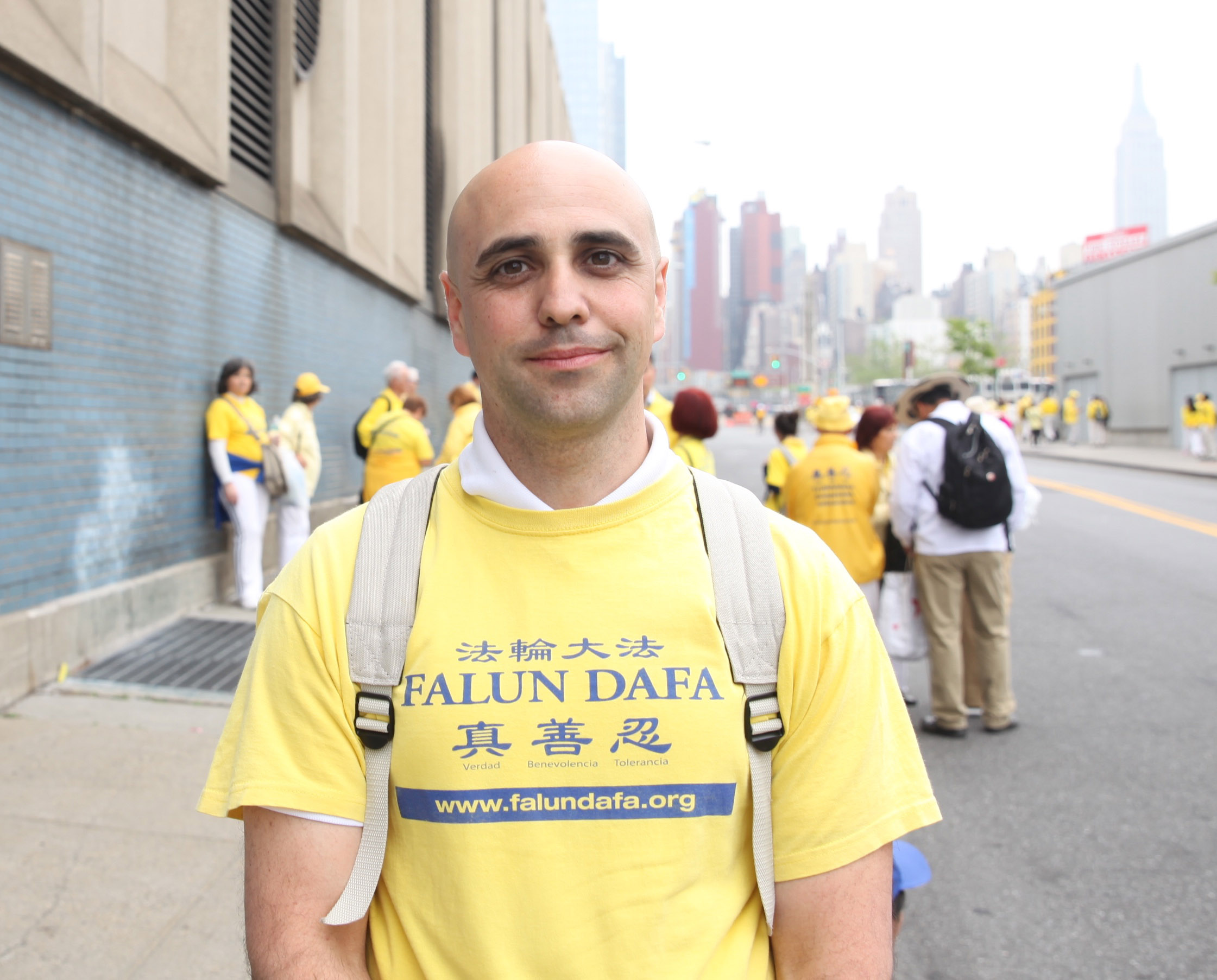 来自西班牙的法轮功学员Jorge Gimeno说每年都会来参加庆祝世界法轮大法日的活动,他是二零一零年开始走入法轮功修炼队伍的。他说自己很高兴见到这么多同修,他希望更多人来了解法轮功的美好。
