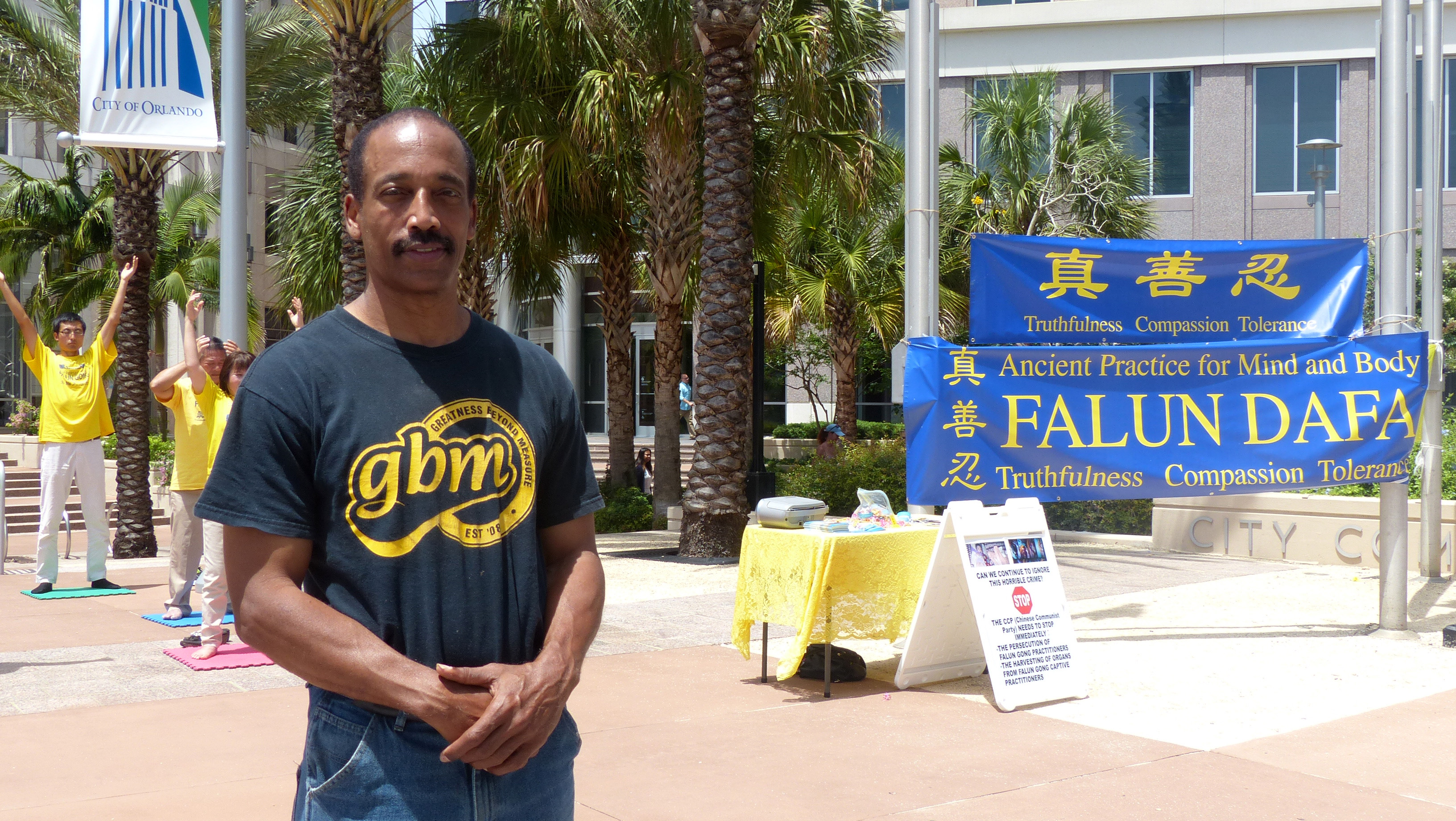 这是两周内法轮功学员第二次在奥兰多市政厅前做功法展示。奥兰多市长巴迪•代尔(Buddy Dyer)此前宣布今年五月十三日为奥兰多市的法轮大法日。