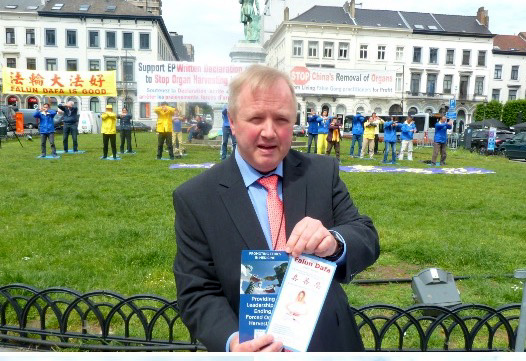 来自捷克的大学教授马丁-博斯克(Martin Bursík)路过,看到法轮功学员在欧盟外面炼功,举横幅,他想起了前几年独立调查人大卫•乔高访问捷克时,讲述中共活摘法轮功学员器官的事情。他表示非常支持法轮功,并在反对活摘器官的征签簿上签名。