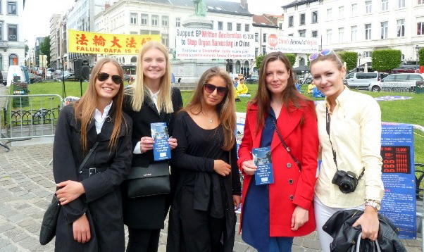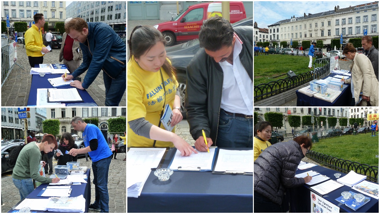 二零一六年五月二十五、二十六日两天,布鲁塞尔欧洲议会总部大楼前的广场上,海外法轮功学员揭露中共活摘大陆法轮功学员的人体器官,呼吁制止中共迫害法轮功,并支持欧洲议会议员发起书面声明,要求欧洲议会采取行动,调查中共活摘包括法轮功学员在内的良心犯器官的罪行。