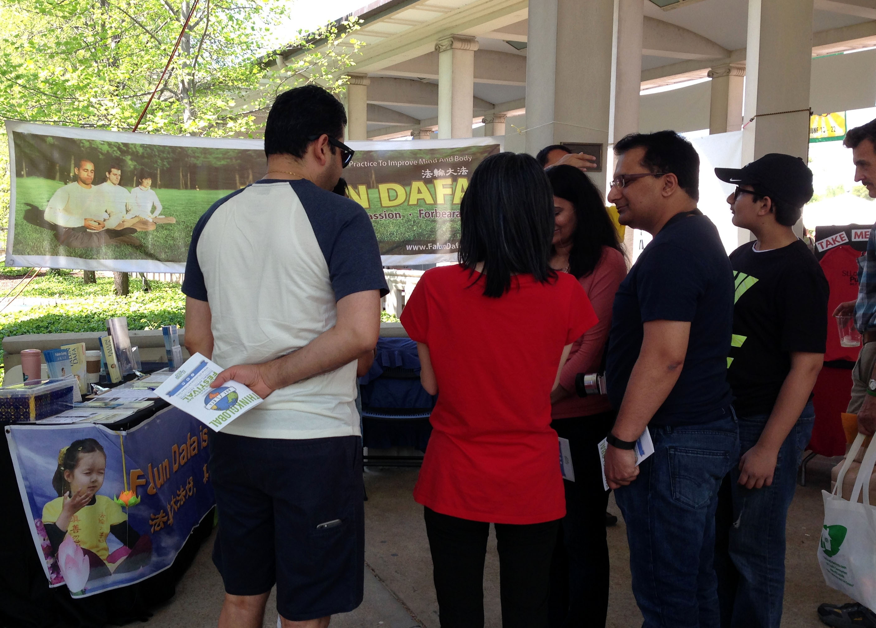 四月二十四日,密苏里州的法轮功学员又参加了在圣路易市的森林公园举办的地球日活动。参加活动的民众来自周边各个地区各族裔的民众,并且很多人都对打坐或是气功有一定的了解和兴趣。