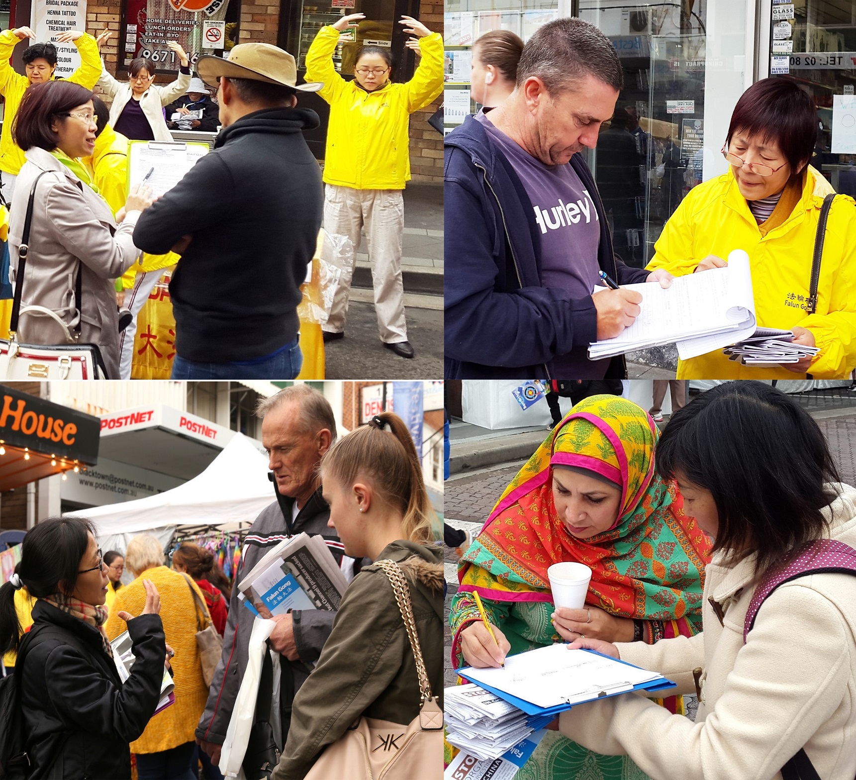 ![]() 图4-5:黑镇文化节,游人纷纷签名支持法轮功 |