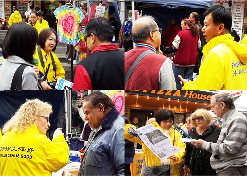 约翰回忆:“我当时就在想:怎样才能让西方社会的民众明白法轮功是很好的,真、善、忍是好的,并不是中共宣传的那样。怎么做呢?当时看到文化节可以摆摊位介绍法轮功,有那么多人参加文化节,正好可以告诉民众法轮大法的实际情况,希望当地民众能受益于如此美好的功法,能免除中共谎言的毒害。我就打电话询问这里的市政厅如何参与这个文化节,从二零零零年时我们就开始参与市政府举办的文化节,并认识了弗兰克先生和其他议员们。从那以后,我们每年都参加市政府举办的文化节活动,一直持续到现在。”