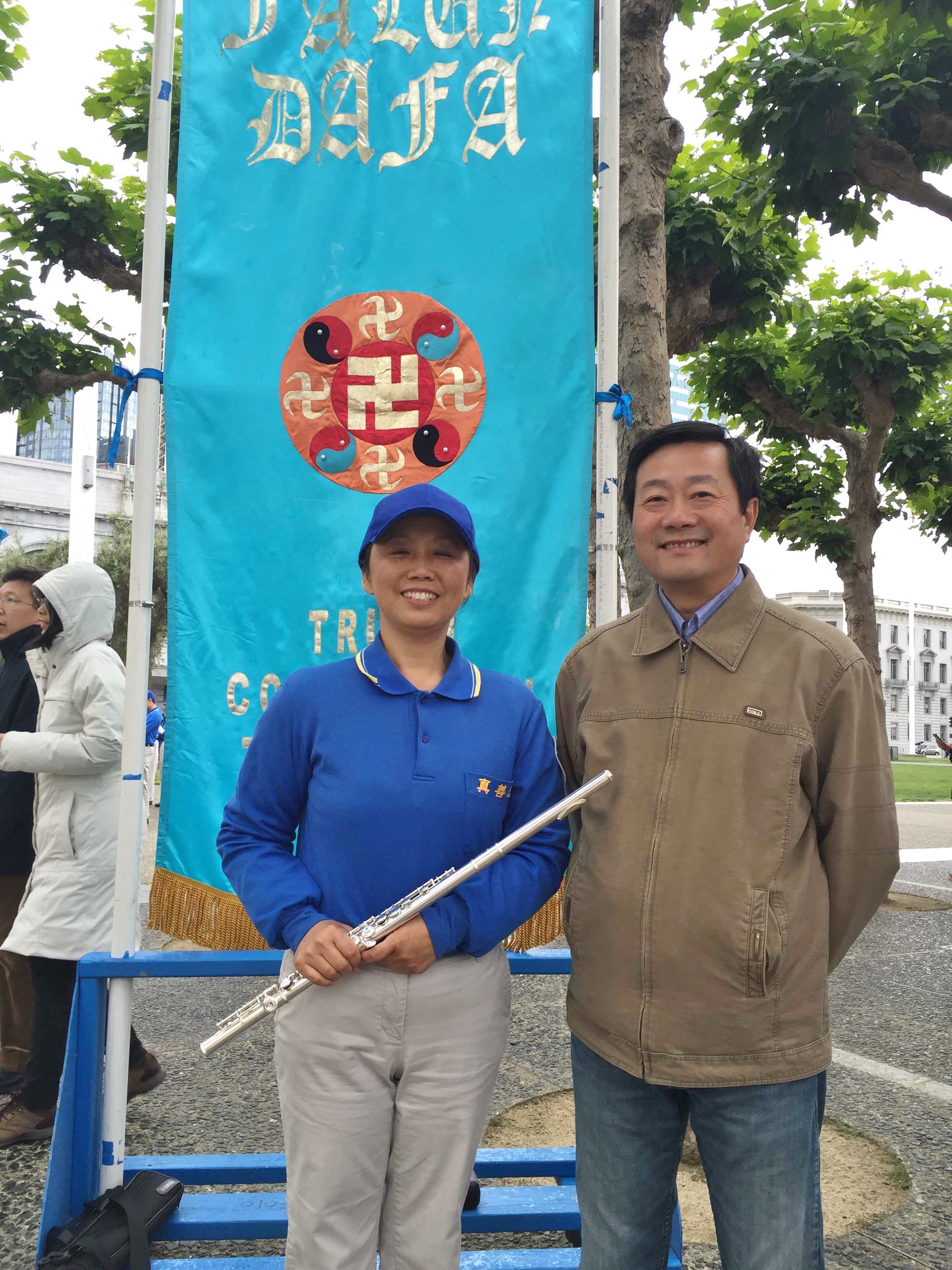 ![]() 图3:二零一六年五月十三日,James邱和太太一起前来旧金山市政广场参加“五一三”庆祝活动,谢师恩。 |