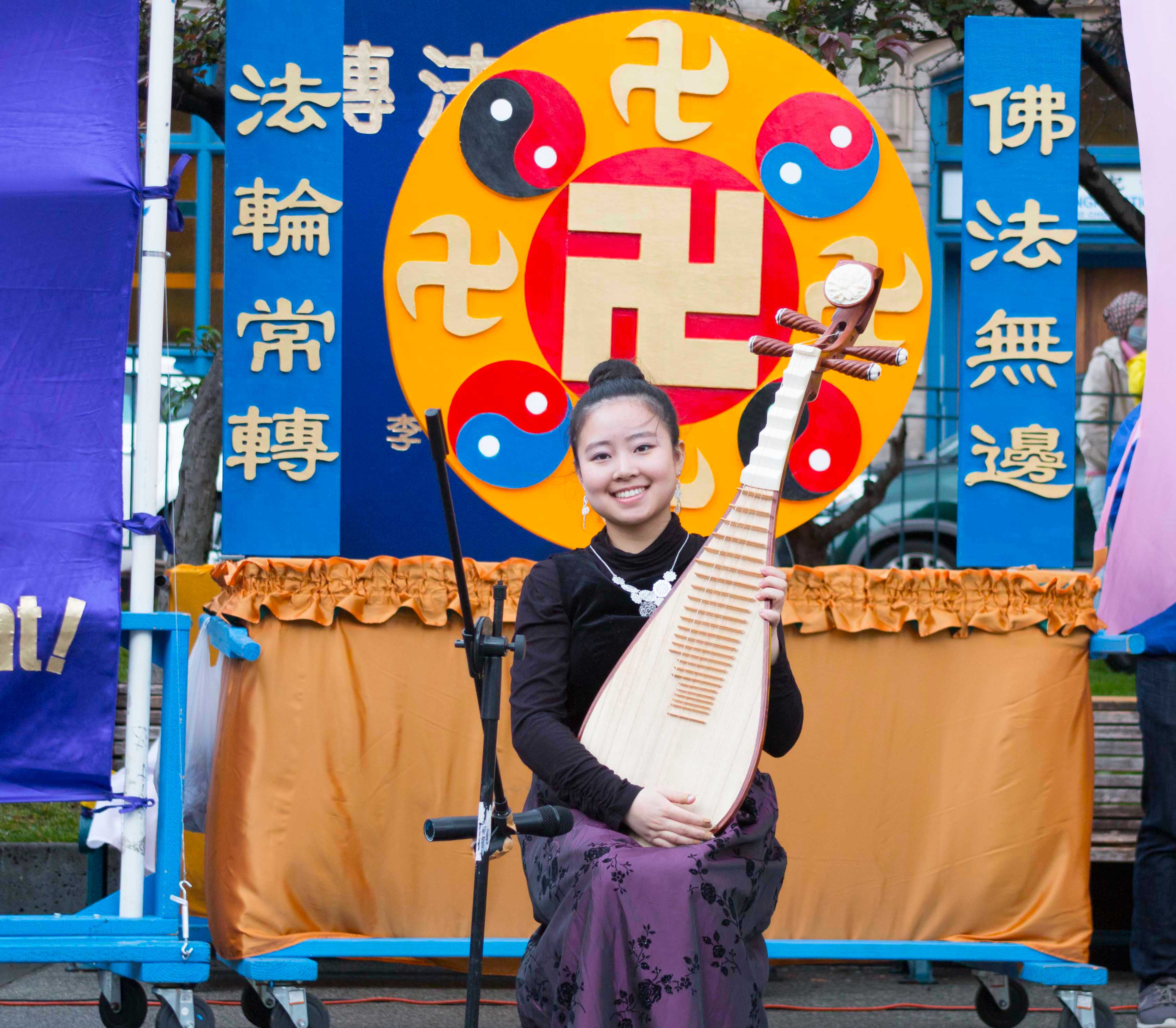 下午一点半,法轮功学员来到旧金山唐人街花园角广场举行庆祝集会。法轮功学员以歌唱、乐器演奏、诗歌朗诵、舞蹈等演出庆祝法轮大法日。其中,有多人发言,讲述自己修炼法轮功前后的巨变。