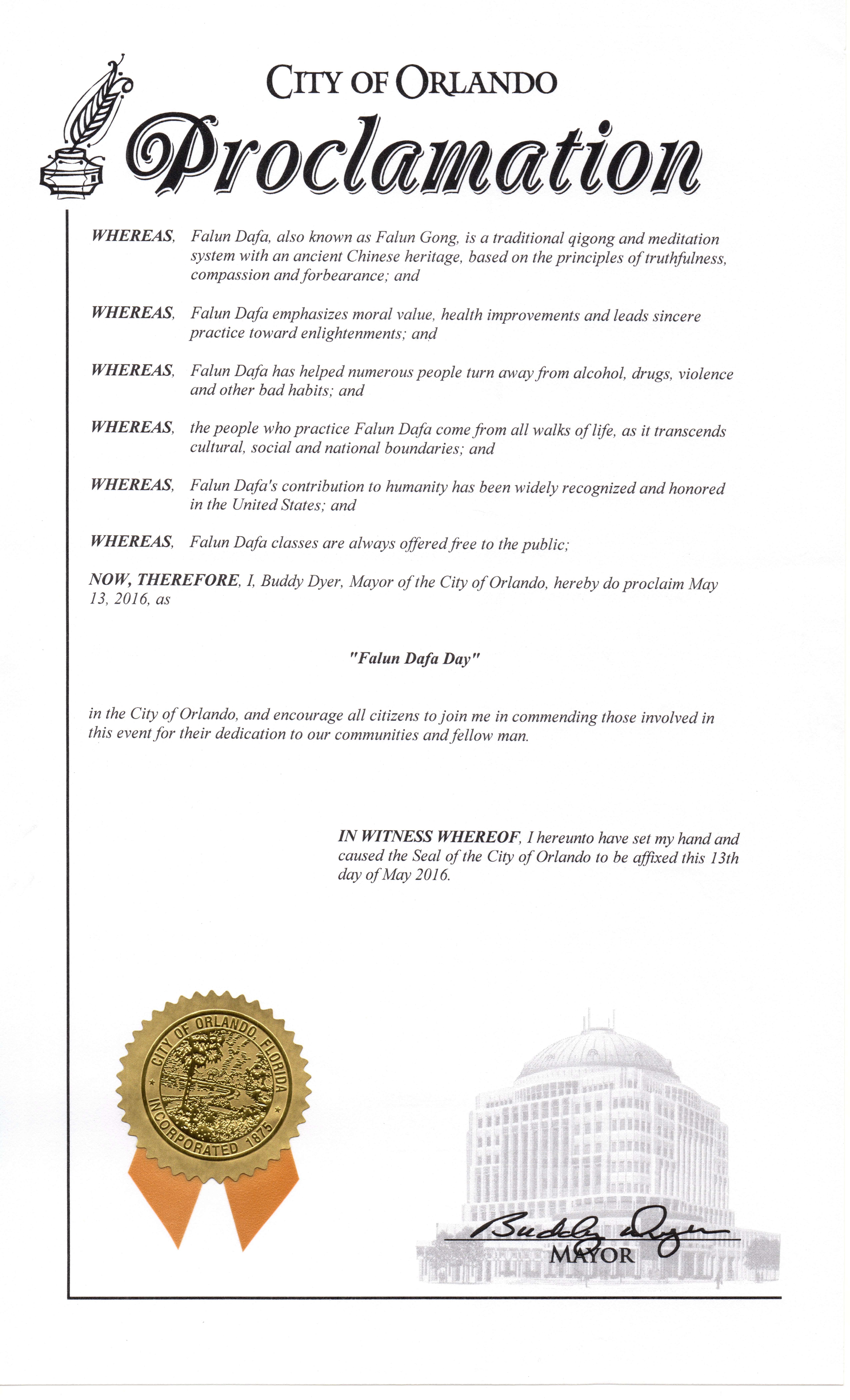 因此,现在,我,奥兰多市市长巴迪•代尔(Buddy Dyer)宣布二零一六年五月十三日为奥兰多市