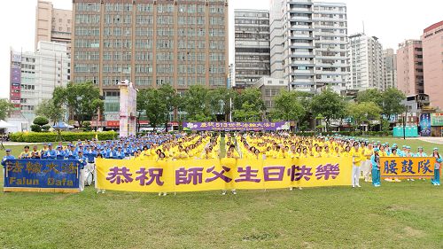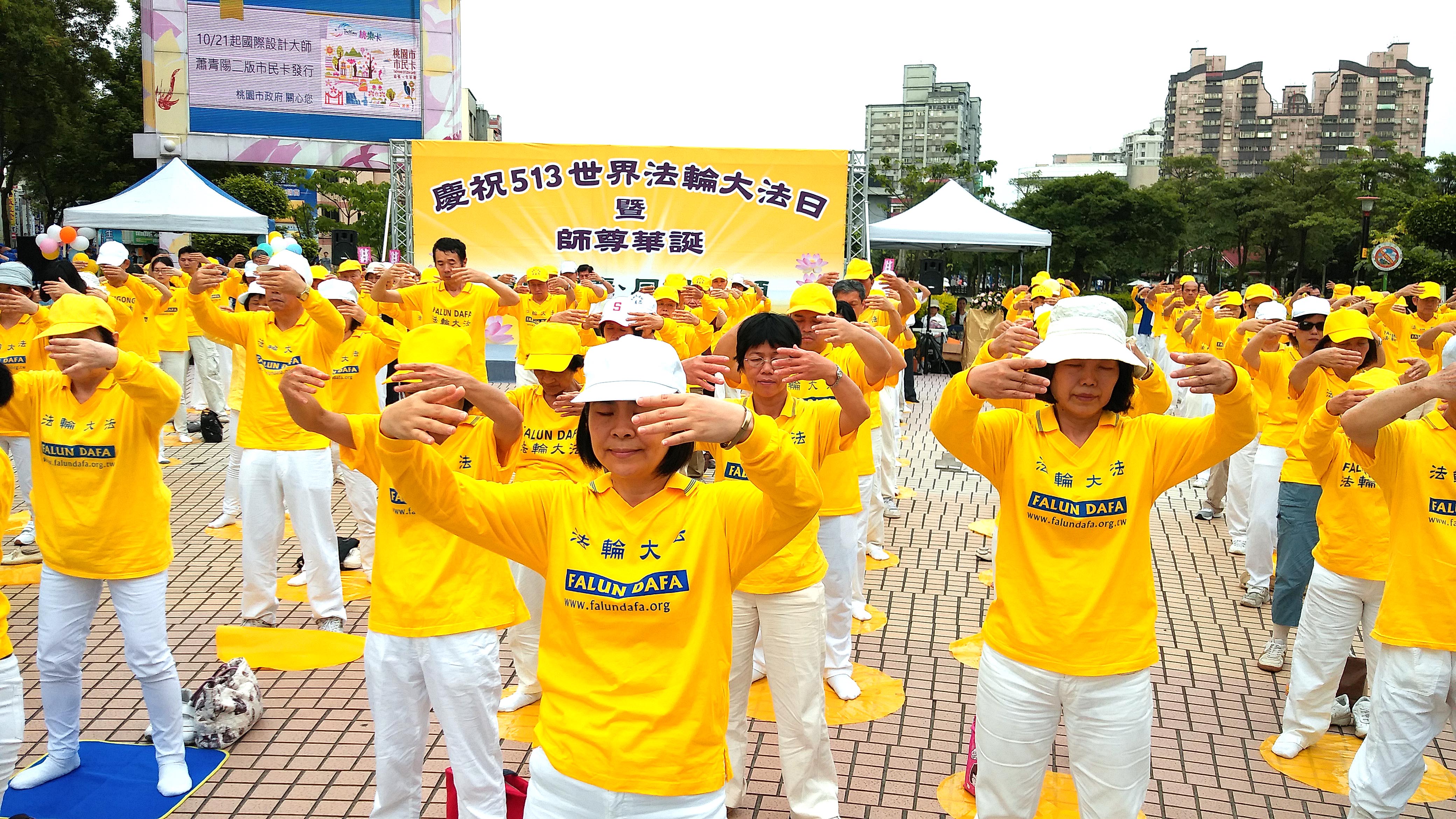 二零一六年五月七日,法轮功学员在台湾桃园市中坜区的中正公园,举办活动,恭贺世界法轮大法日暨师尊华诞。尽管每位学员得法的历程不同,但是都不约而同由衷地表示:能修炼大法,太幸运了,谢谢师父。