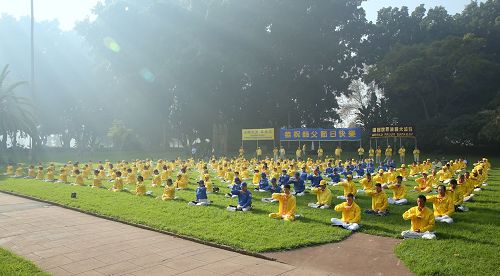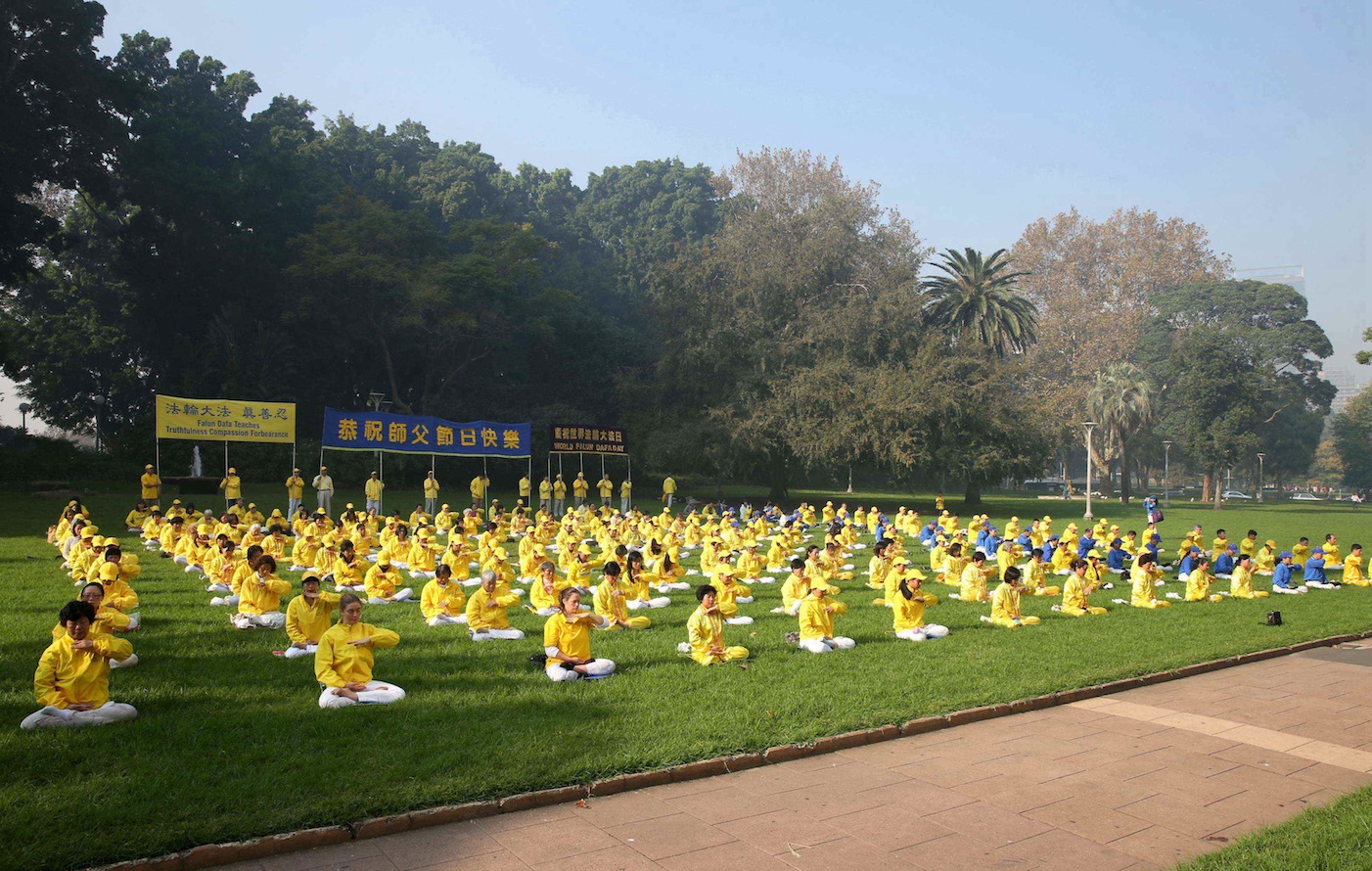 ![]() 图5-7:法轮功学员在悉尼海德公园集体炼功,展示大法祥和与美好 |