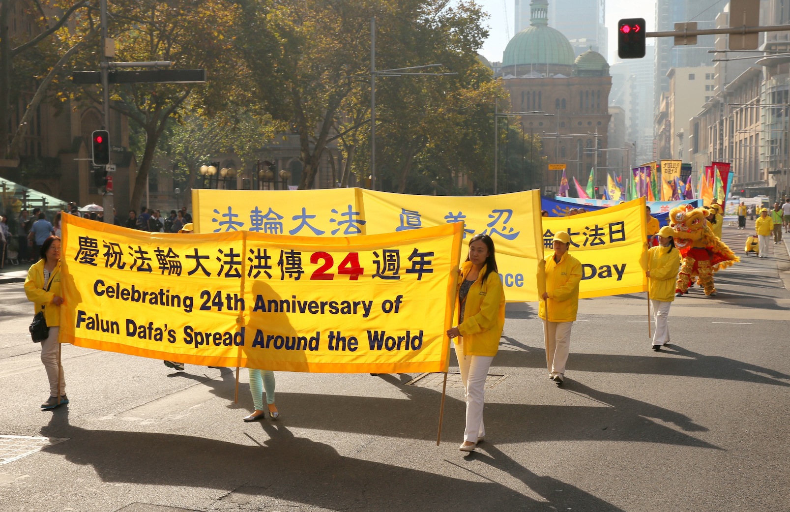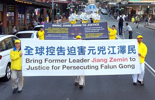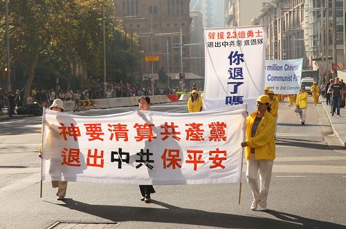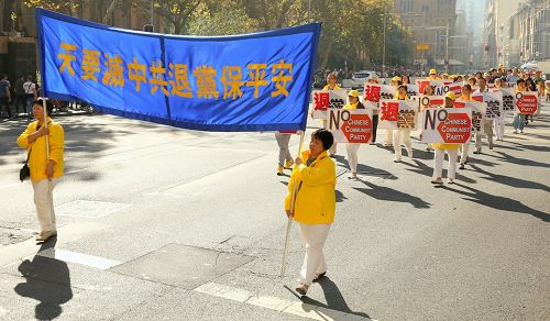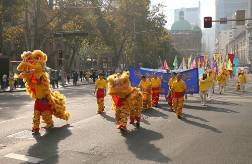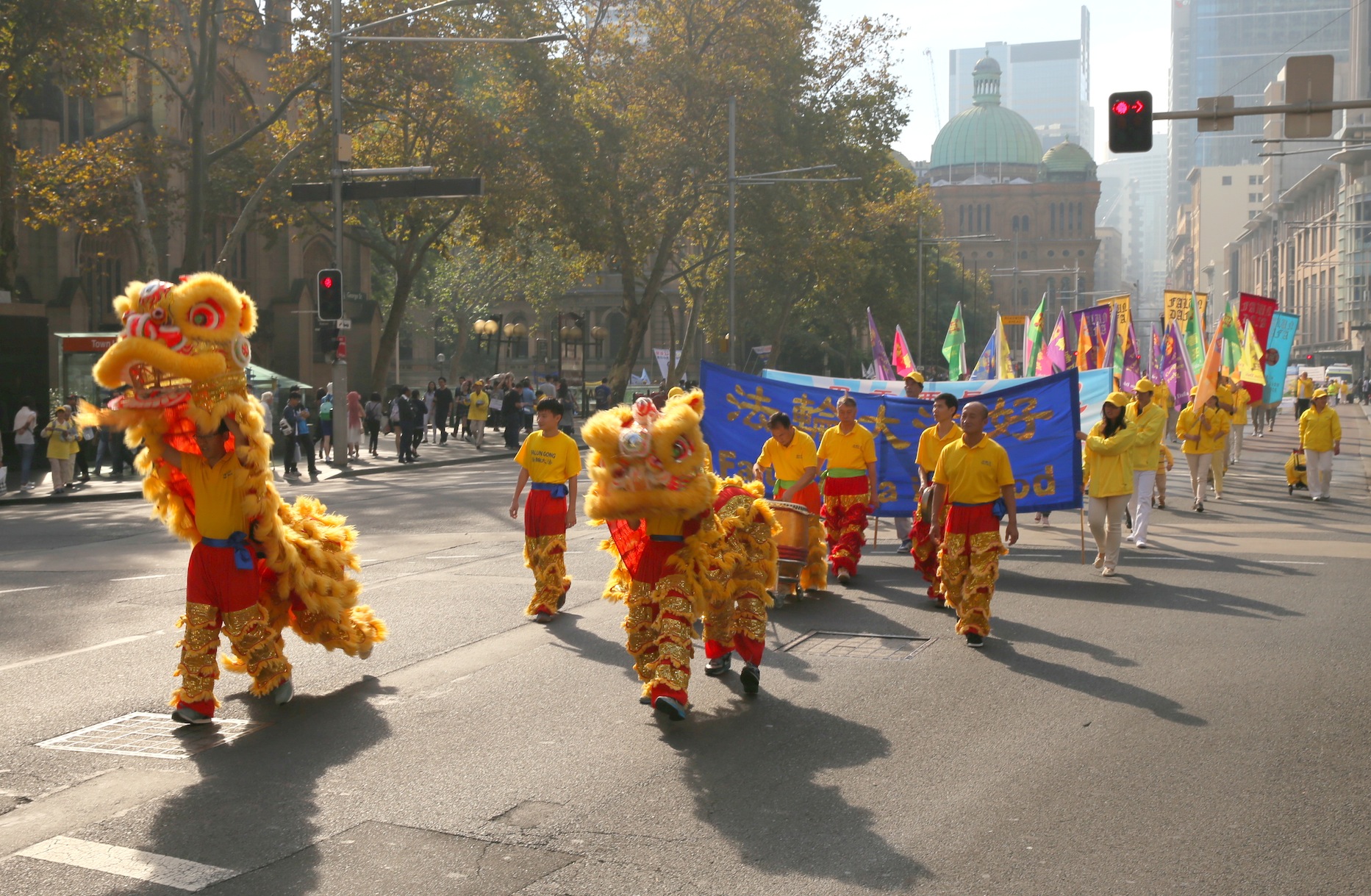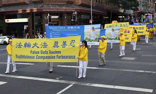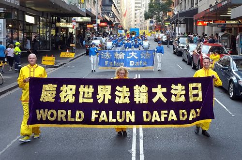 ![]() 图8-17:悉尼法轮功学员们在悉尼市中心游行,与市民共庆“世界法轮大法日”,同时使更多民众了解法轮大法的美好和被迫害真相。 |