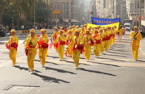 午后一点半开始,悉尼数百名法轮功学员们由天国乐团领队,浩浩荡荡的从悉尼市政厅前出发,举行盛大游行。悉尼各界民众、市议员和人权活动家前来支持并加入游行队伍。他们共同希望将法轮大法传递真理“真、善、忍”的美好传播给更多世人。市民被法轮功游行队伍祥和又壮观的景象震撼和吸引,他们纷纷驻足观看、拍照留念。