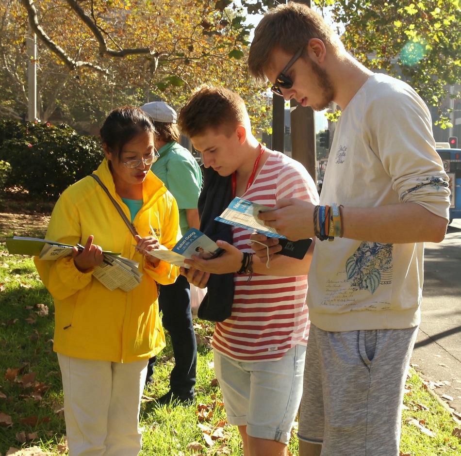 悉尼西人法轮功学员艾米(Amy)表示,她已经修炼六年了,这也是她第六次参加悉尼大法弟子举行的世界法轮大法日游行。艾米感叹地说:“我发自内心地感谢李洪志师父从来不曾放弃过我。自我修炼以来,法轮大法使我获得了新生。大法的法理帮助我去掉了很多人的执着,在内心上获得真正的自由。修炼前,我一直是从外在去寻找获得(精神)自由的方法,修炼后,经过学习《转法轮》,我明白了‘真善忍’的法理,也明白了只有放弃人的各种执着和欲望,纯净自己,才能真正使自己得到升华。每天的生活中会发生各种各样的事情,有时是不可思议的,所以要头脑清醒,知道什么是最重要的,按真善忍的要求成为一个更好的人。”