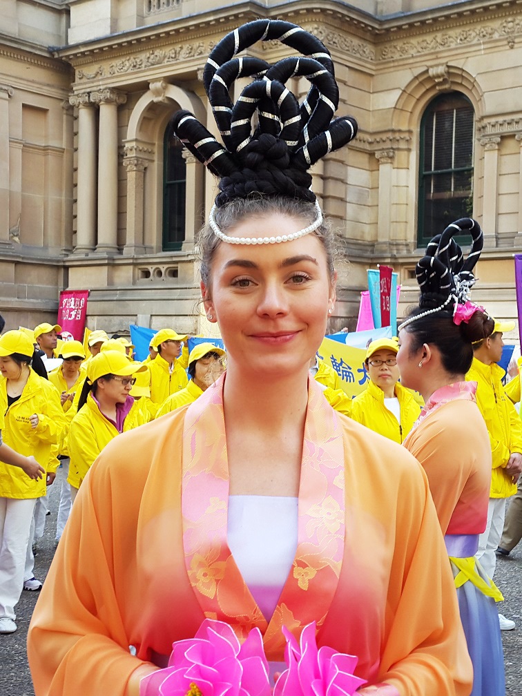 ![]() 图27:穿着仙女服装的悉尼西人法轮功学员艾米(Amy) |