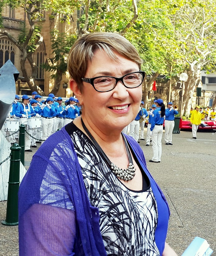 赫吉(Karla Heggie)女士在路边非常关注地观看着法轮大法浩浩荡荡的游行队伍,她告诉记者:“这真是太好了!我看到过各种游行,但从没在悉尼看到这种形式的游行。它在揭示中国发生的迫害,并表达了一种期望。这样做真的是很美好!”她表示,不久之前在悉尼市区的法轮功真相摊位了解到中国政府对法轮功迫害的信息,并说:“这样的游行很有效果,很好。”