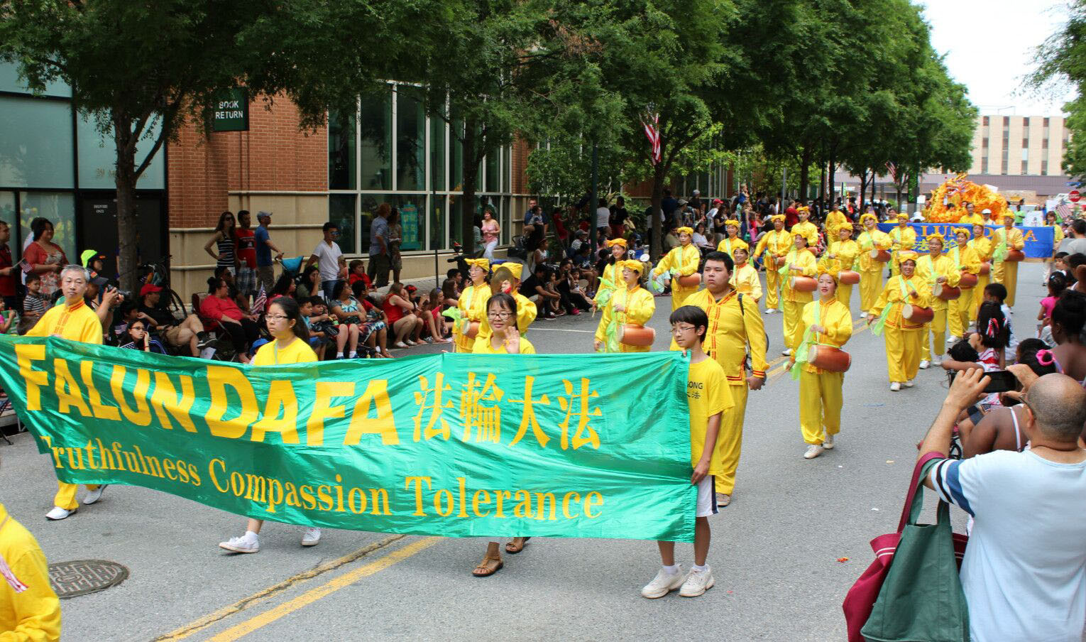 ![]() 图1-6:二零一六年五月二十五日,美国大华府地区的法轮功学员参加在马里兰州洛克维尔市(Rockville)和弗吉尼亚州瀑布教堂市(Falls Church)举行的“纪念日”游行。观众赞:祥和、美好。 |