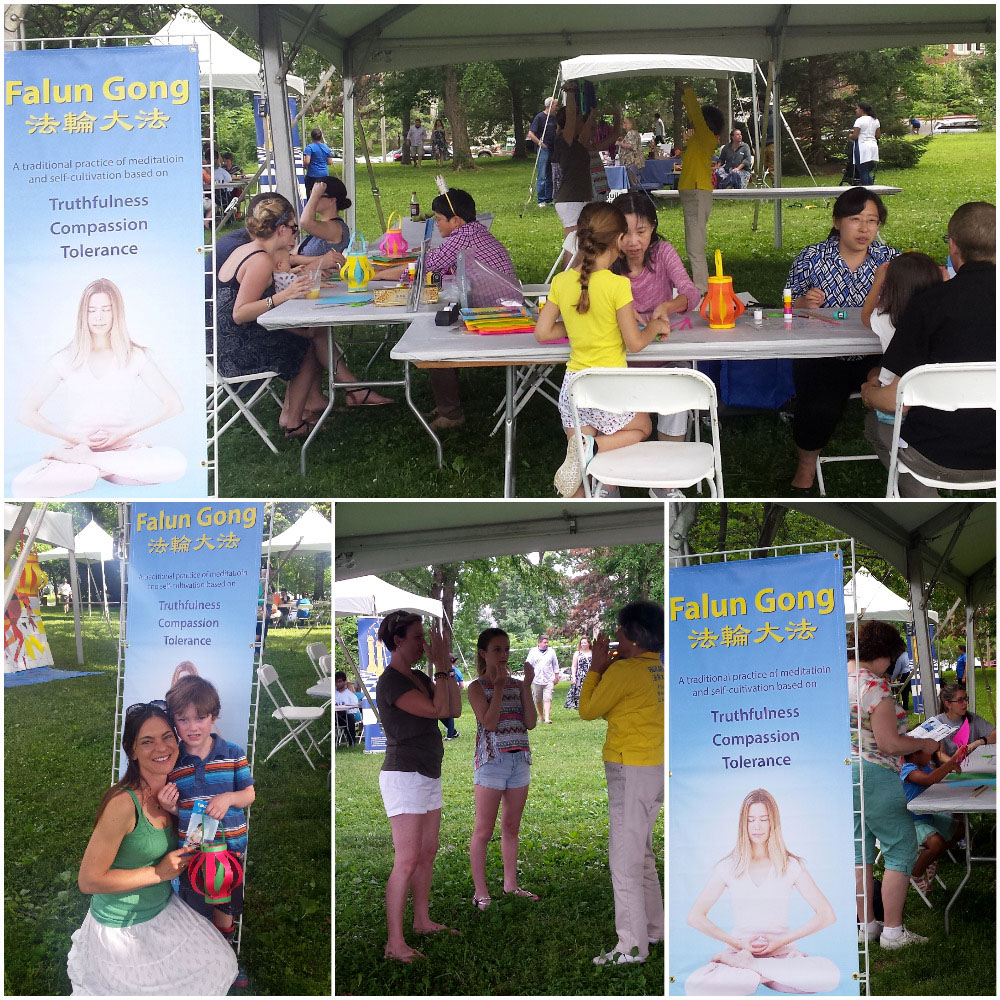 今年的艺术节上,学员教授小朋友们制作纸灯笼,并向民众介绍法轮功。法轮功学员的展位多年来一向受到孩子和家长们的热忱欢迎。法轮功学员耐心细致,对孩子们充满爱心,小朋友们拿着自己做出来的灯笼,兴高采烈。很多家长则对中国文化颇感兴趣,对法轮功祛病健身、净化心灵的功效更是向往。听了功法介绍后,很多人表示要上网去了解更多的信息。也有的人当场就学功,并表示炼功让他们觉得很放松。