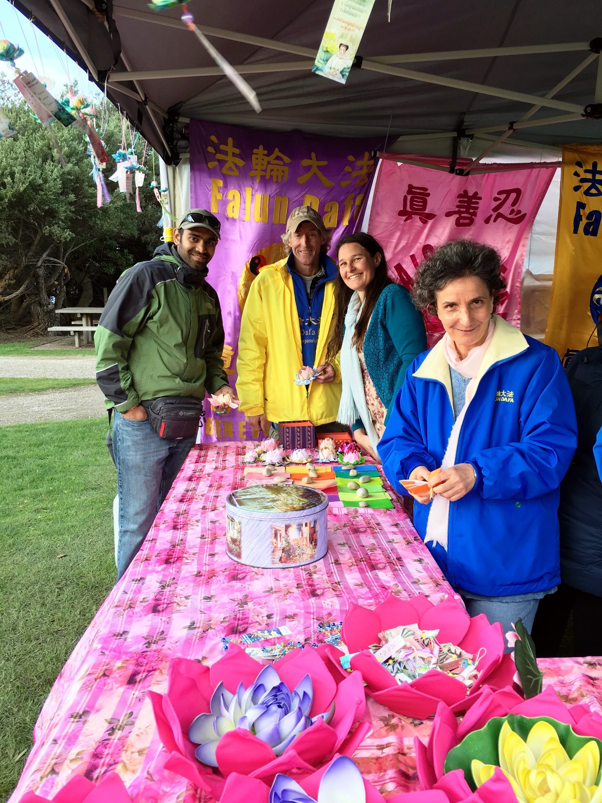 协调这次活动的西人法轮功学员佩塔说:“一位女士建议我们在当地开办教功讲座,并提供了社区礼堂的联系人和联系电话,当地学校的美术老师,也准备邀请学员去学校教孩子们叠莲花。”