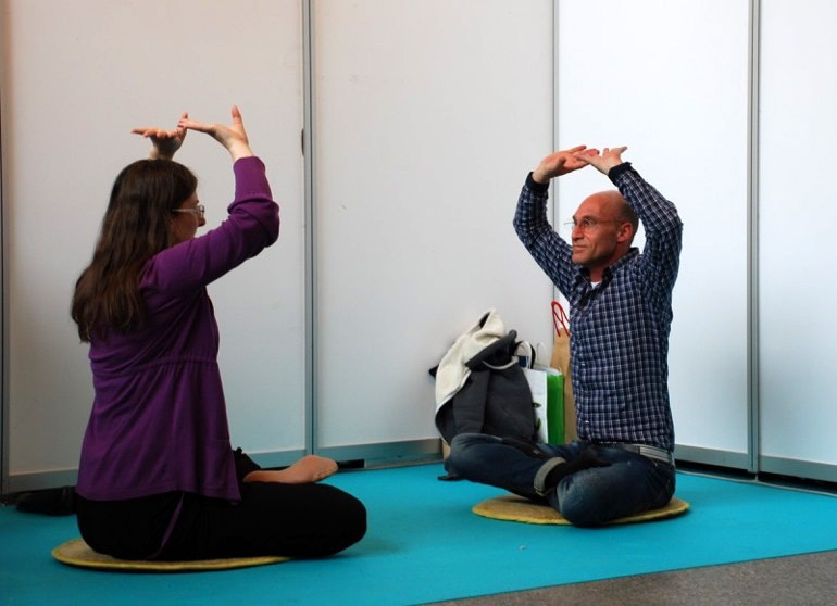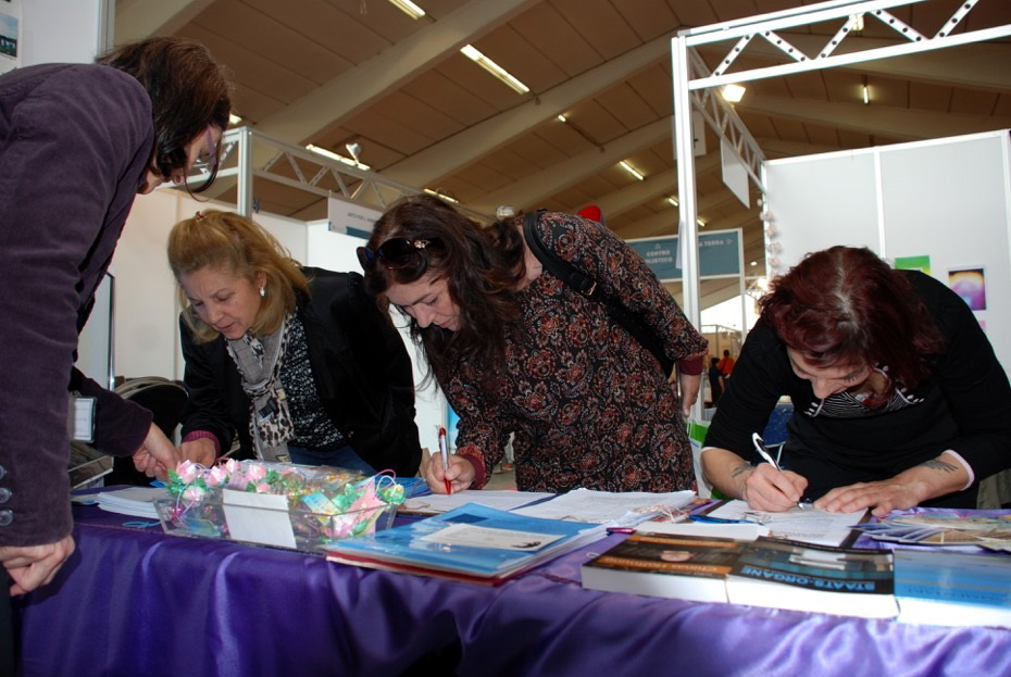 一对夫妇来到展位。男士叫保罗(Paolo),是意大利人,太太是日本人。他们知道发生在中国的迫害,都签名支持法轮功反迫害。太太对教功录像留下了深刻的印象,她在展位上学功,并买了一本英语《转法轮》和教功录像。在学打坐的时候她能够深度入定。保罗第二天又来到展位购买了电影《自由中国》的光碟。