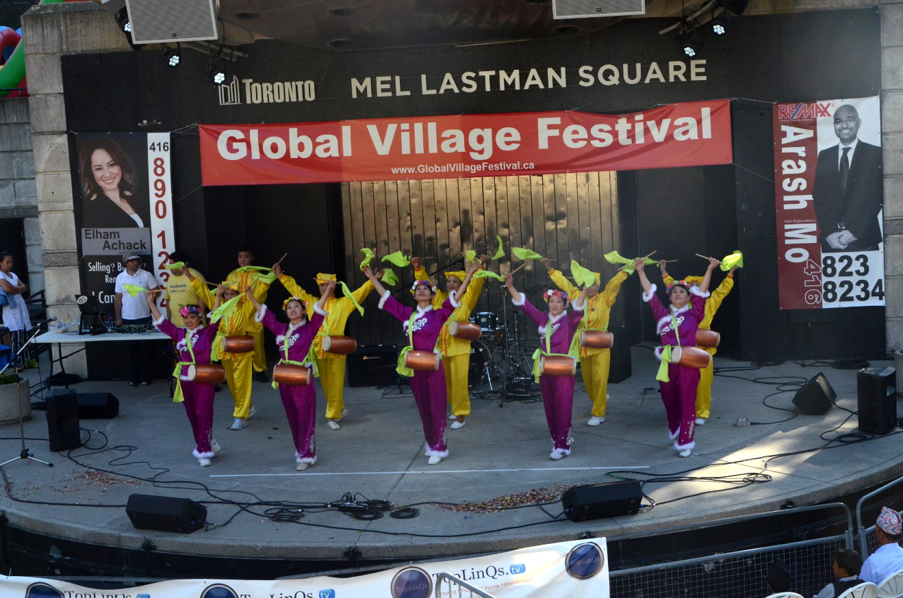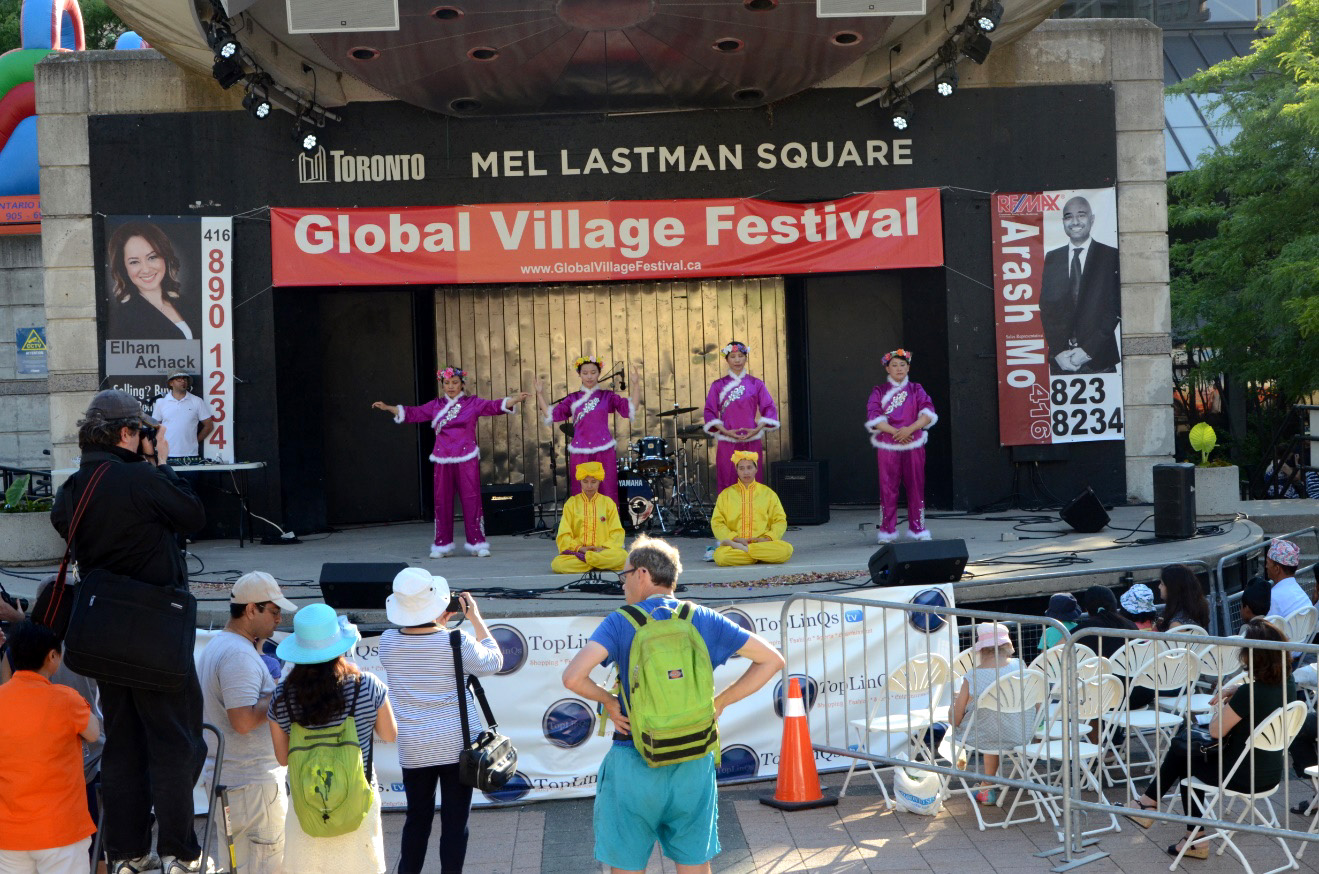 ![]() 图1:法轮功学员参加多伦多国际村节,在中央舞台演示五套功法。 |