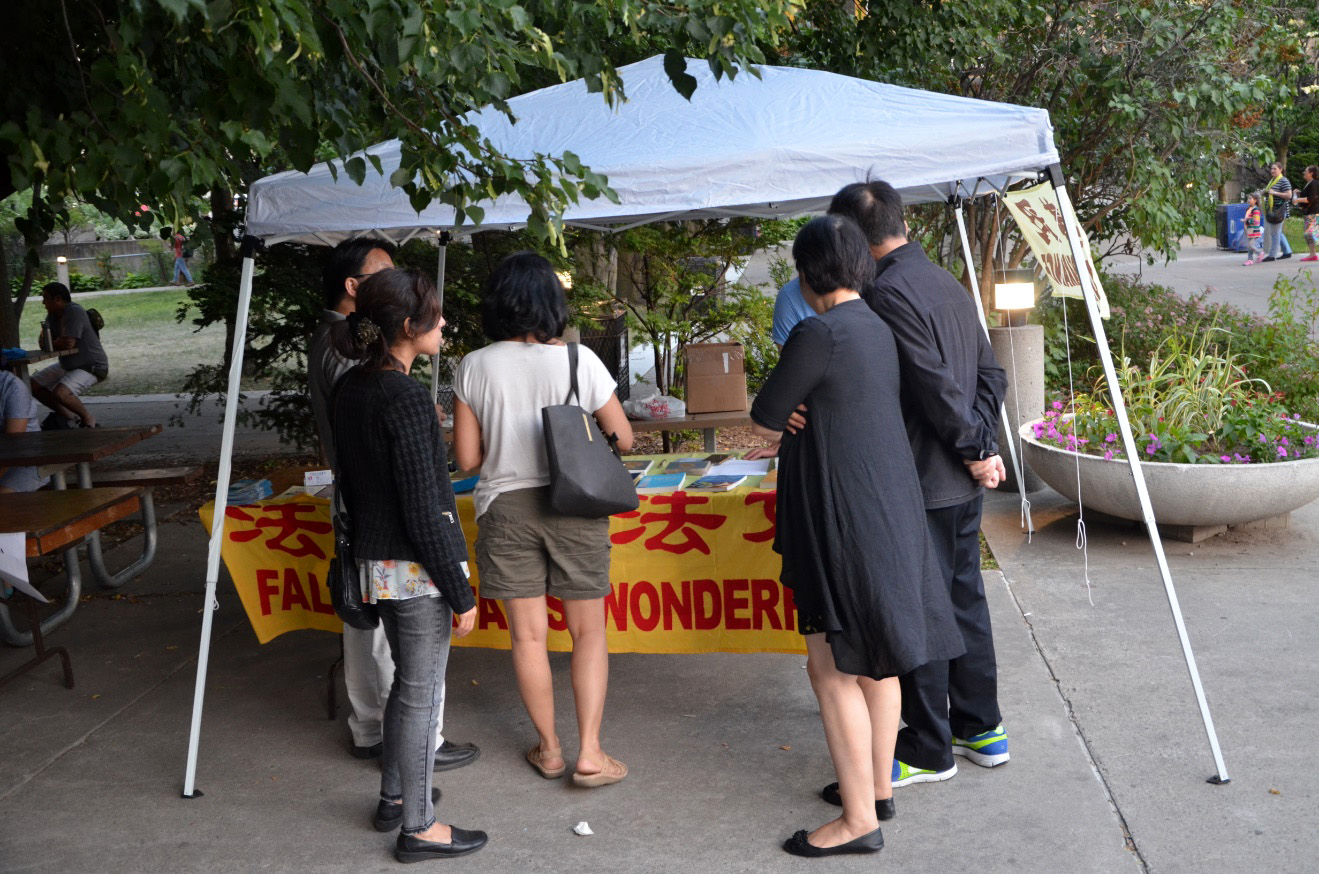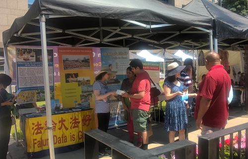 前来国际村节的游客中有不少来自中国大陆,在看到有法轮功的展位时问:“这是什么活动,还有这么多法轮功?!”学员们就给他们讲法轮功弘传世界一百多个国家和地区和《转法轮》已被翻译成三十九种语言出版发行的盛况,听完后很多都接受了真相资料。
