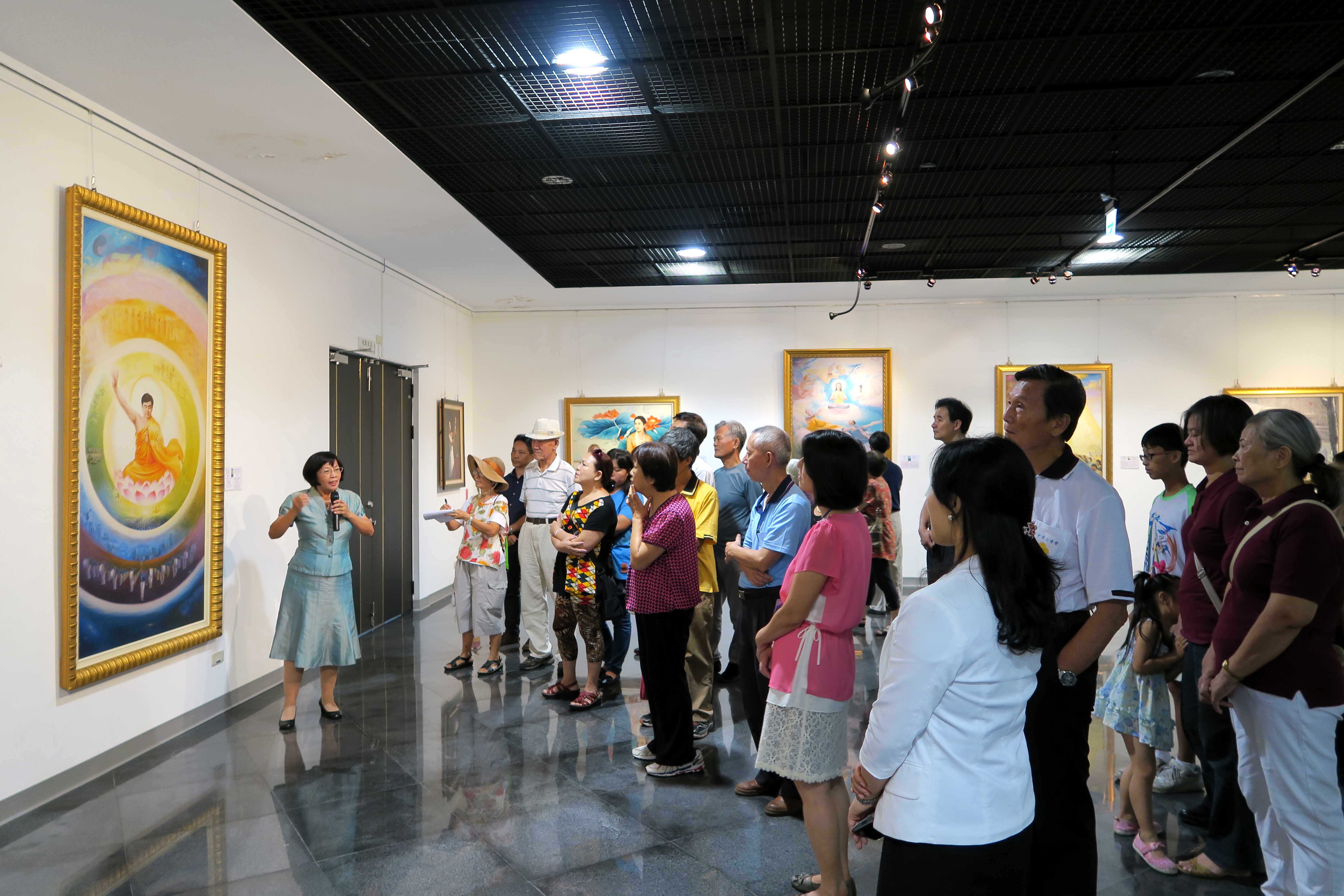 ![]() 民众专注的聆听导览员谢春华老师解说画作。 |