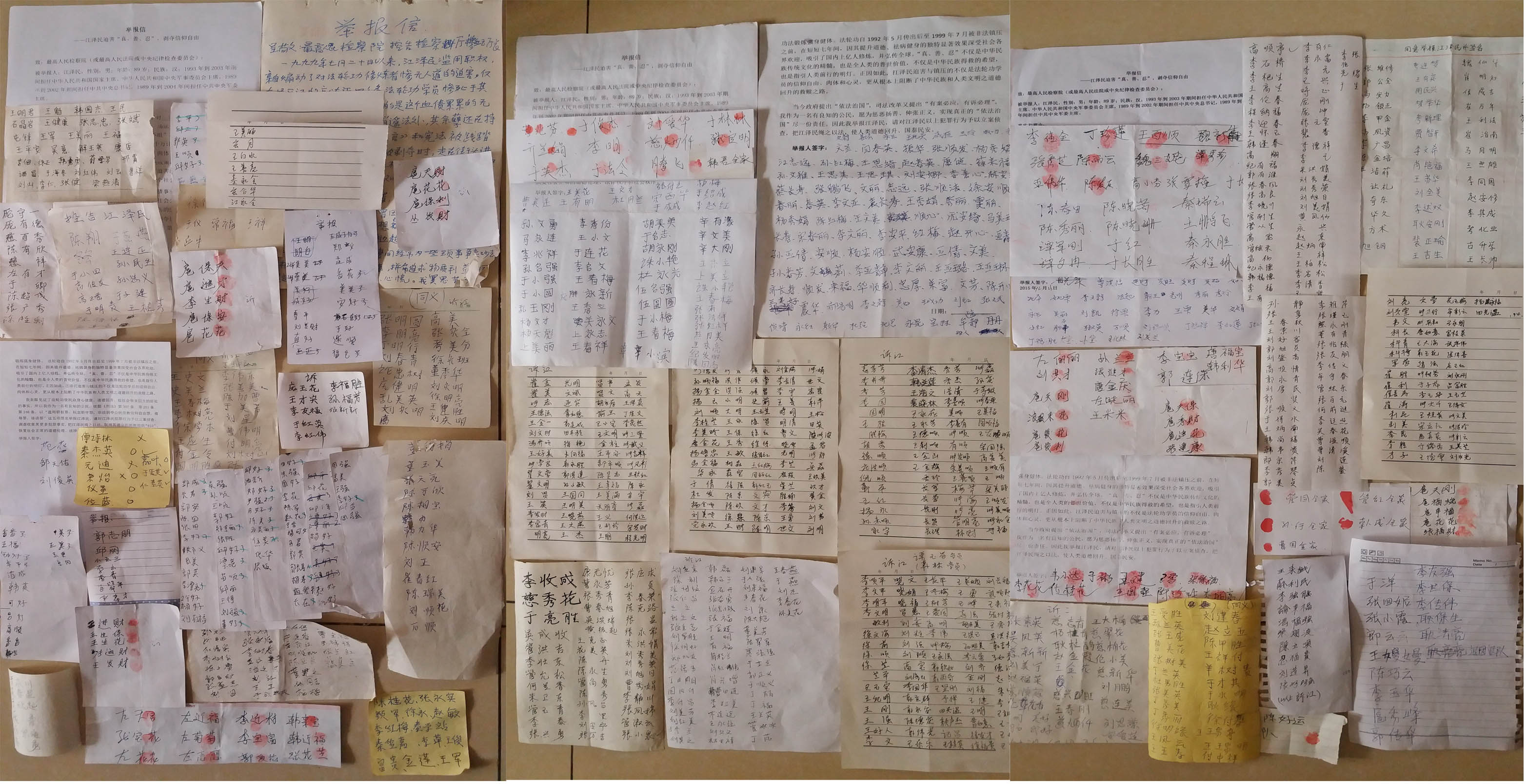 ![]() 图:潍坊市部分市民签名举报迫害元凶江泽民 |