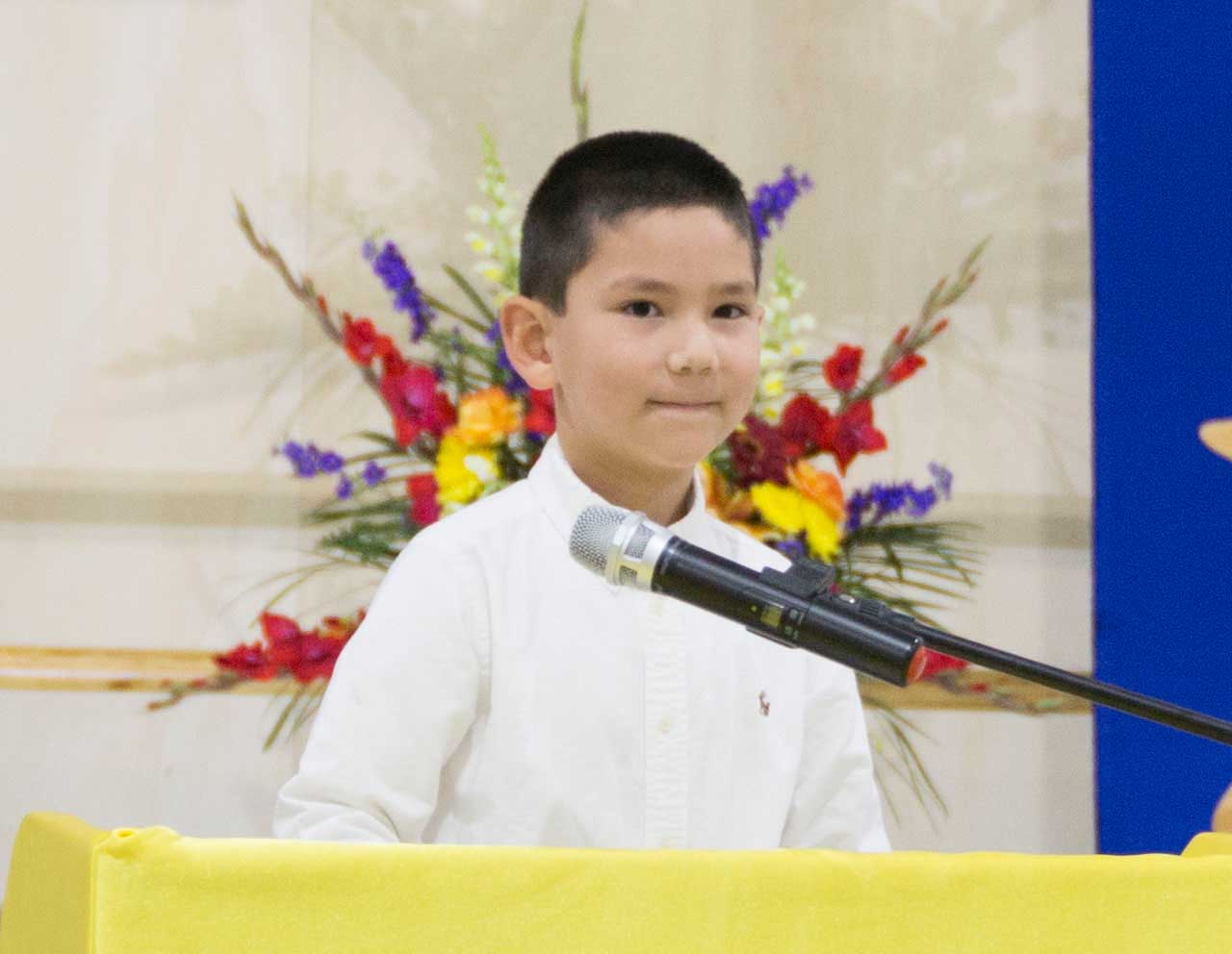 来自中国十四岁的Kevin An,自从修炼法轮功以后,原来在中国养成的坏毛病都在一个个去掉,尤其是原来他特别爱赌气生气,在家时总把妈妈气得不行,得法后不知不觉有了很大改变了。