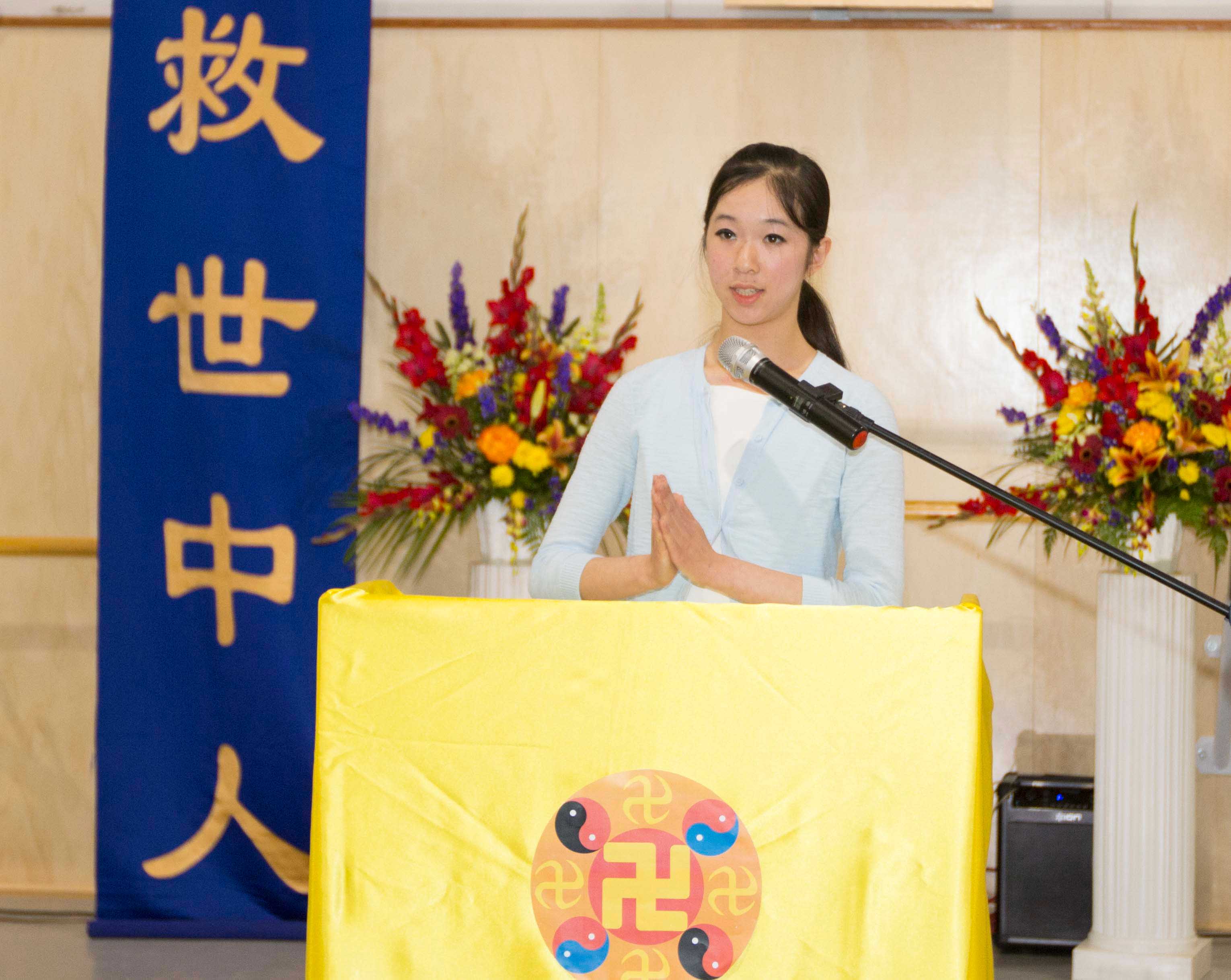 今年十二岁Katherine Xiao表示,她经常参加大法活动。她的妈妈告诉她,大法弟子一定要听师父的话做“三件事”。