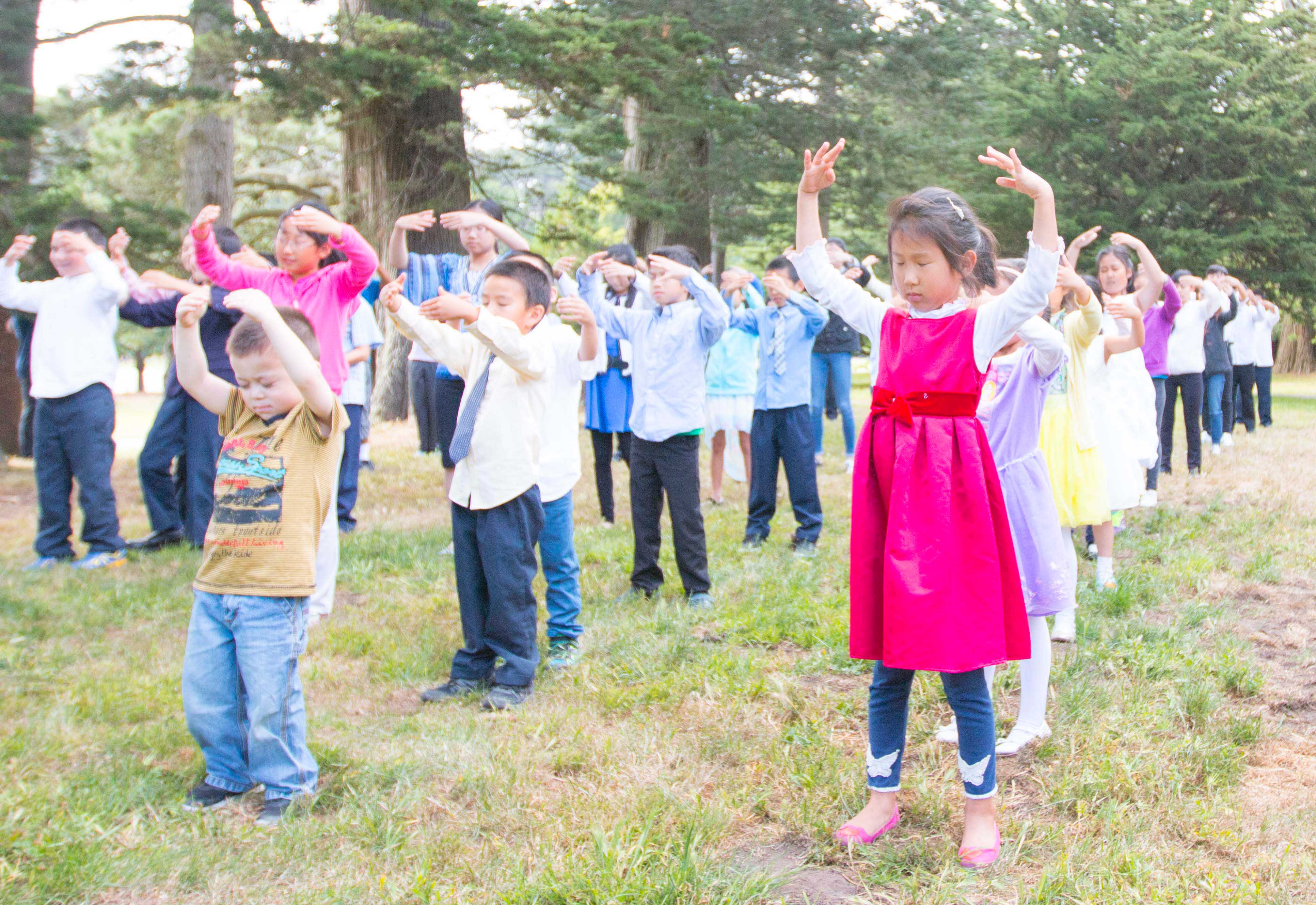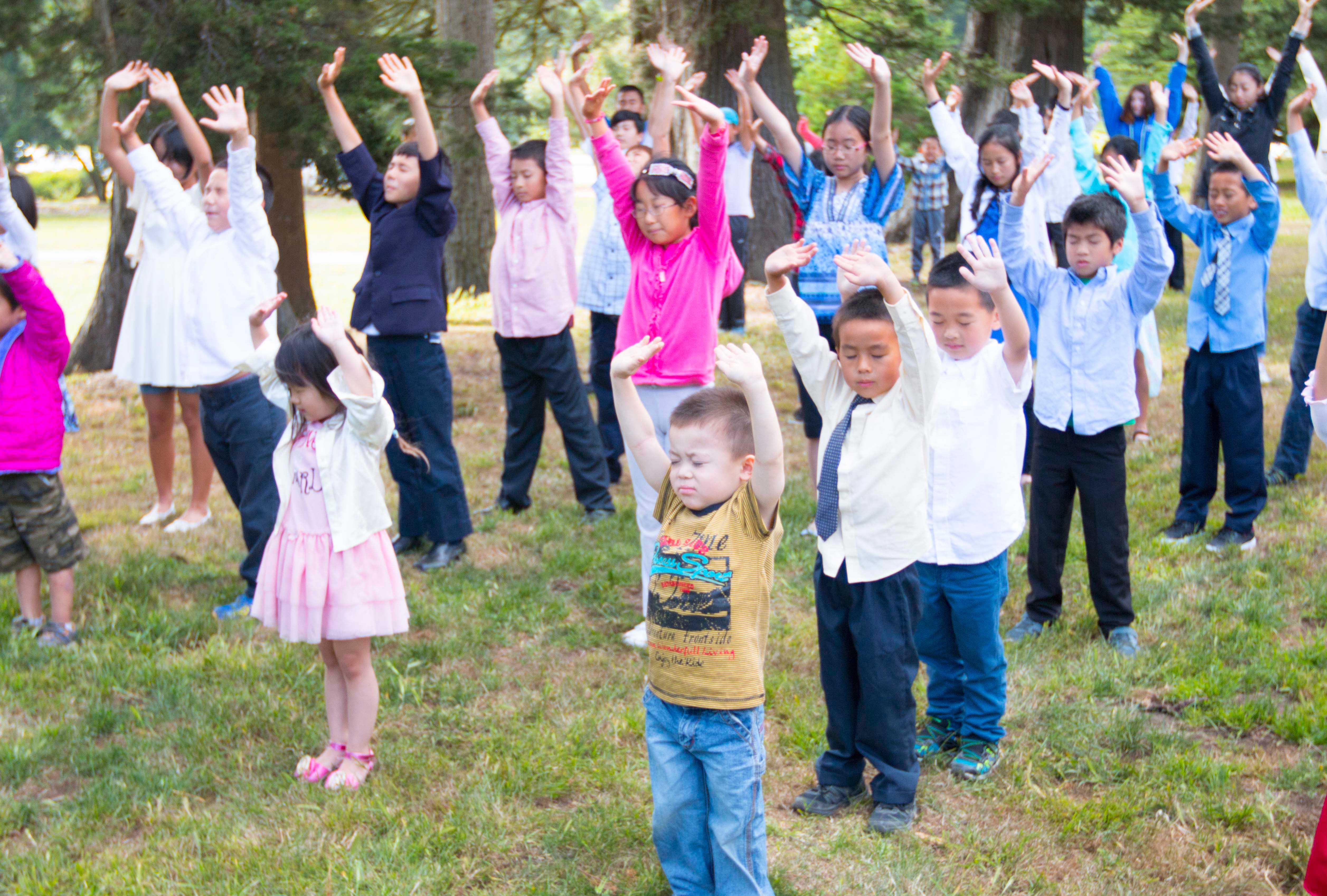 法会后,大法小弟子们集体炼功,并观看了飞天学校大法小弟子们表演的舞蹈和笛子演奏,圆满结束了当天的活动。