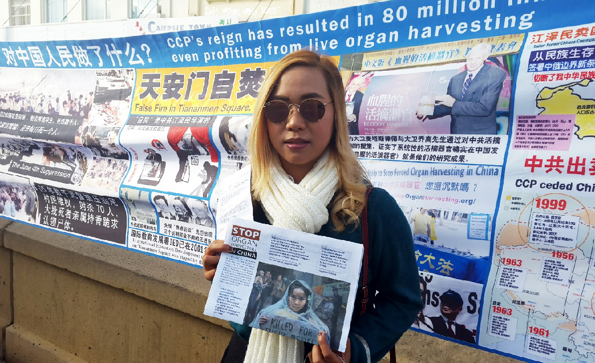 泰国华人拉亚女士(Cherry Raya)是大学生,她走过来主动签名支持法轮功反“活摘”,她表示:“活摘”太邪恶和恐怖,让人震惊,我会把这个消息用社交媒体去告诉我所有的朋友们。