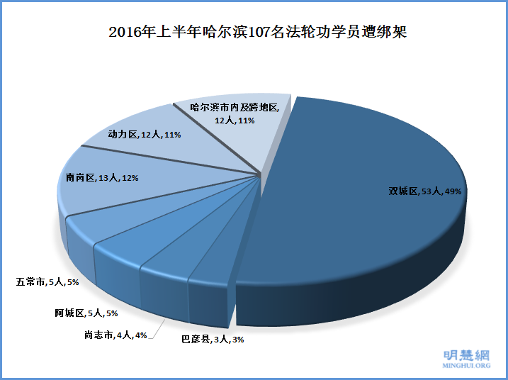 ![]() 2016年上半年哈尔滨107名法轮功学员遭绑架 |