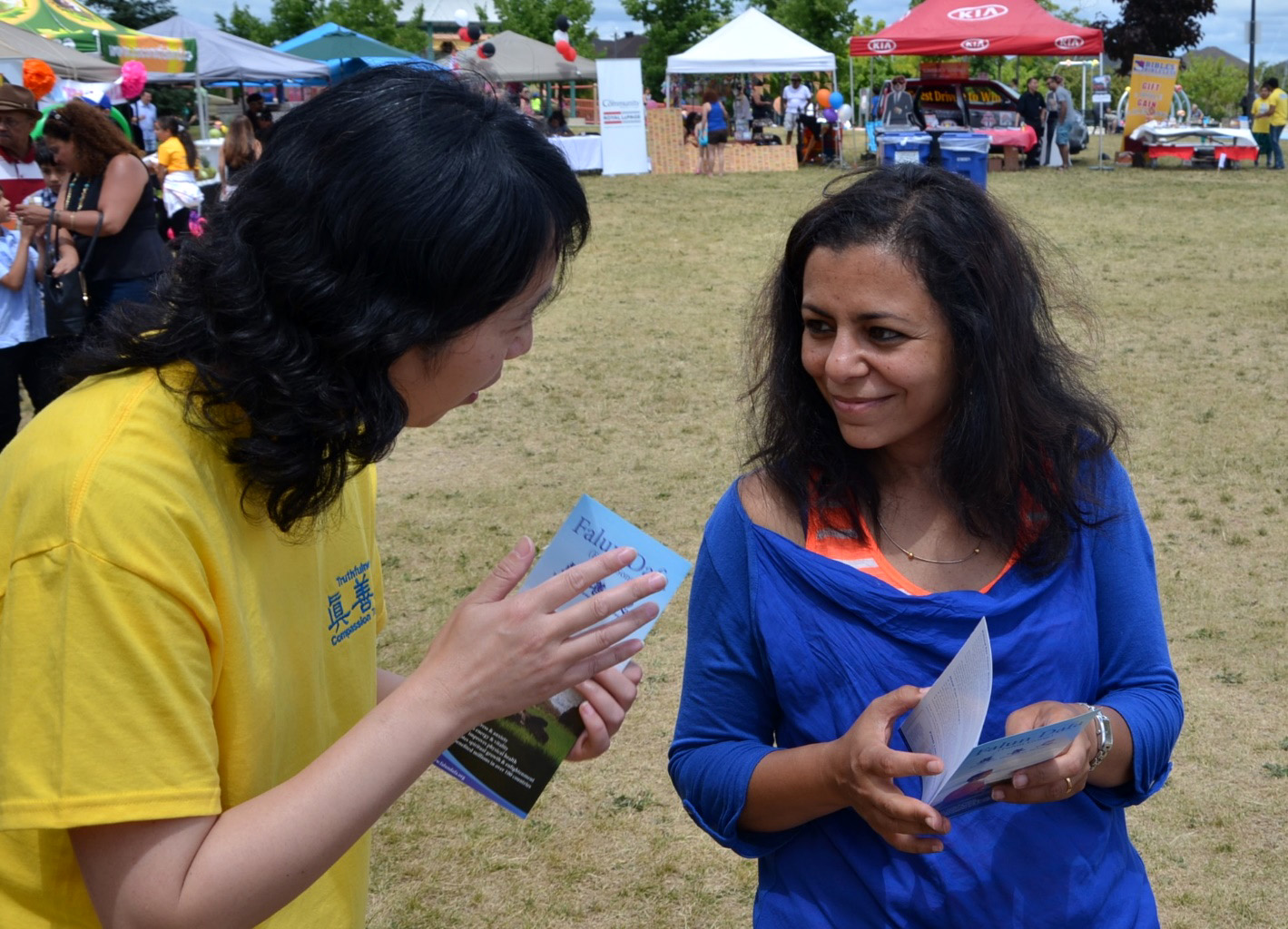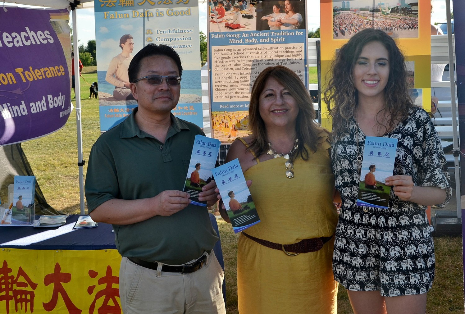 【明慧网二零一六年七月二十日】二零一六年七月十六日,加拿大麦肯齐谷公园(Mackenzie Glen Park)举办了旺市拉丁文化节,据节日主办方估计有数千人前来参加这个以家文化为核心的节日活动,法轮功学员们在节日的活动中向各界民众介绍法轮大法并演示功法,受到欢迎。