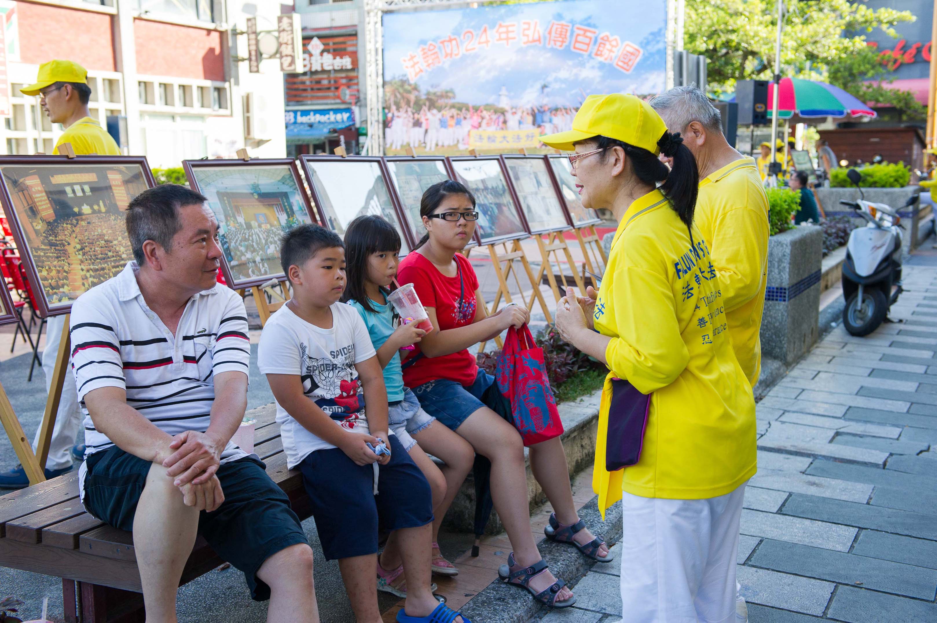 中科院退休员工、恒春居民黄先生喜见法轮功团体,说:“我要再开始炼法轮功,这是教人向善的好功法。”黄先生说他退休之前每天下班会经过南门,在那边有一位高中英文老师义务教人炼法轮功,那时候他和邻居约三十几位参加学炼,大家身体都变好了。退休后搬家,又因儿子事业忙碌,反需花时间带孙子上下学就渐渐没炼了,今天回来恒春,看到悼念活动他很受触动,他说:“有时候当看到大陆游客对法轮功有误会时,我会对陆客说:‘我有看过《转法轮》这书,也炼过功,身体变好了,法轮功是好的。’共产主义是极权专制,思考模式与一般人不同,千万别受骗,法轮功是修炼,根本与政治无关。”