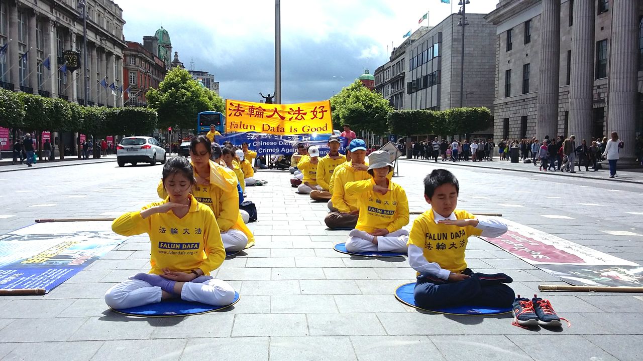 ![]() 图8:二零一六年七月十六日,爱尔兰法轮功学员在都柏林市中心集体炼功,传播法轮功的真相。 |