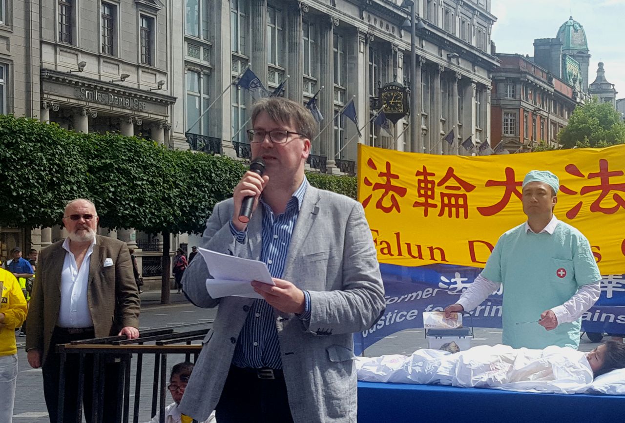 “我想说说令我非常关心的这场迫害的机器罪恶的一个方面。中国在七百多个移植中心和医院每年做六万到十万个器官移植手术,其承诺可以在二至四周内找到合适的肾脏或者肝脏或者眼角膜……二零一二年,前卫生部副部长承认到二零一五年停止使用死刑犯器官。但是中国继续禁止针对其器官移植系统的独立调查与核实,而血腥的强迫活摘器官在继续着,这是一个空前的、野蛮的、低级的犯罪。我们不会接受任何条件,除非立即停止这场邪恶的对法轮功的迫害……这场国家操控的迫害应该马上停止,中共政府应该知道普通中国人应该俱有最基本的人权——不被中共当作附属品的权利。我们要求针对这场迫害和施害者进行全面快速的调查。”
