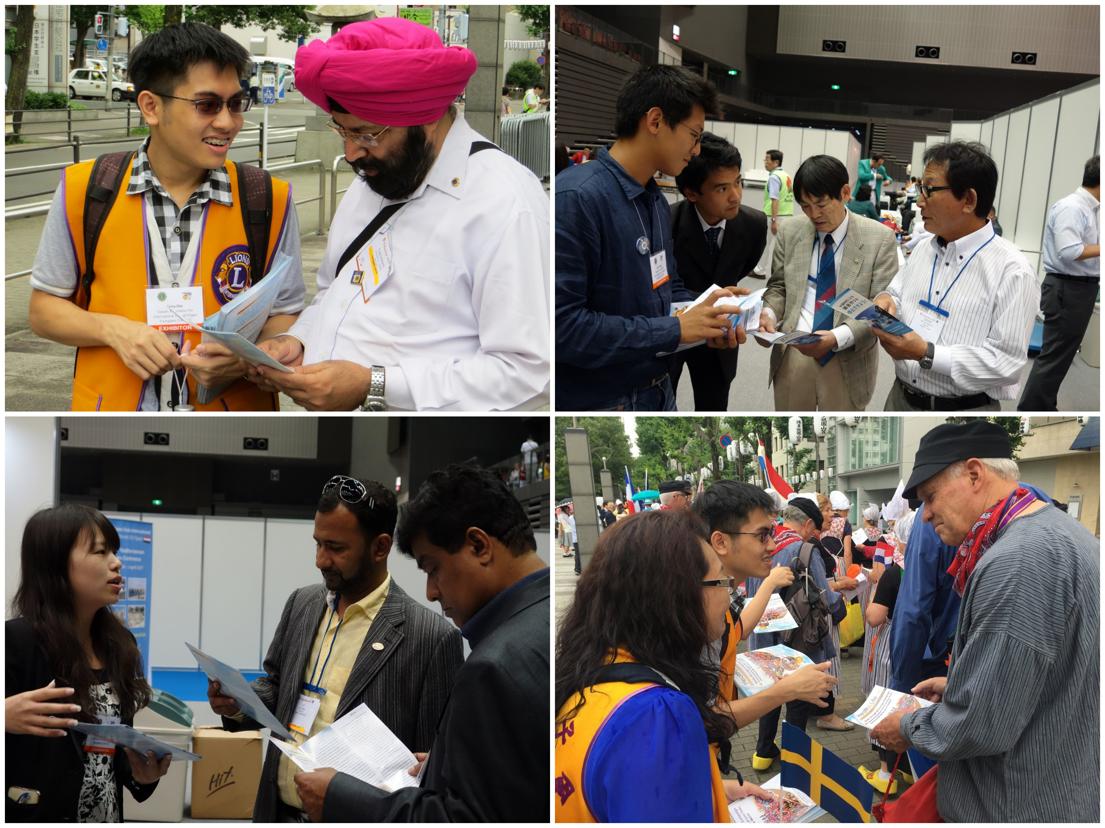![]() 来自台湾和日本的法轮功学员利用机会向各国狮子会代表传递真相 |