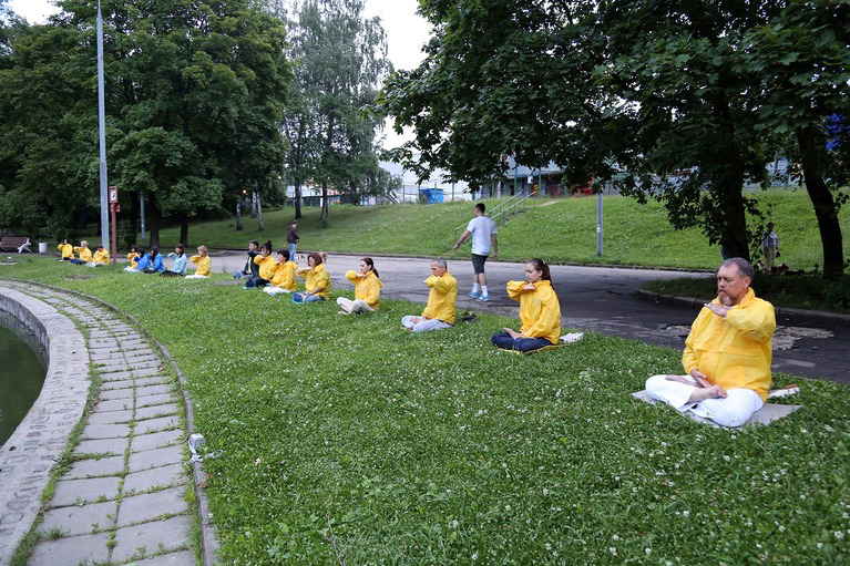 图1-4:二零一六年七月二十日,反迫害十七周年,莫斯科法轮功学员在中领馆附近举行了功法展示,向世人展现“真、善、忍”的美好与学员们大善大忍的精神,讲述法轮功的真相。 |